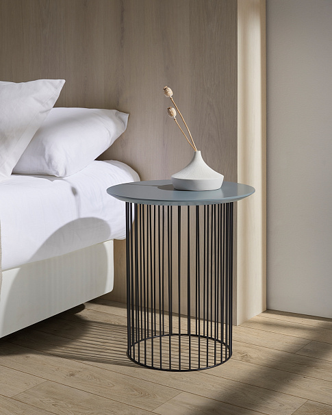 Он предлагает широкий выбор материалов и отделок столешницы, таких как лак, орех, дуб, черное стекло, компактный шифер и скульптурная керамика. Кроме того, металлическая конструкция может быть покрыта черным или белым лаком с термополаком, что обеспечивает большую универсальность для адаптации стола к любому типу установки.