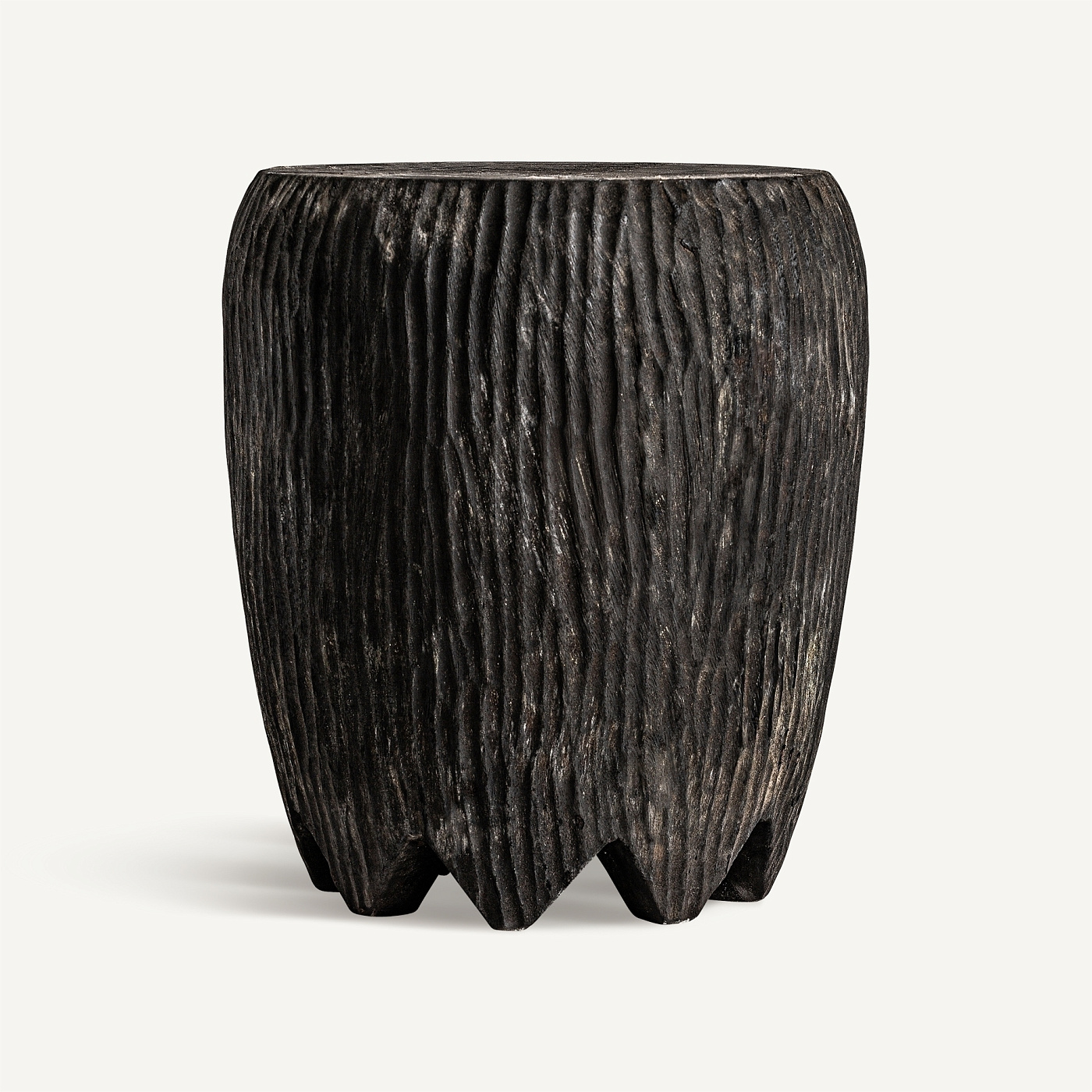 Стол со скульптурным характером, изготовленный из чёрного суара. Состаренная отделка и органичная форма придают ему неповторимую индивидуальность. Ширина: 45 см, Глубина: 45 см, Высота: 48 см