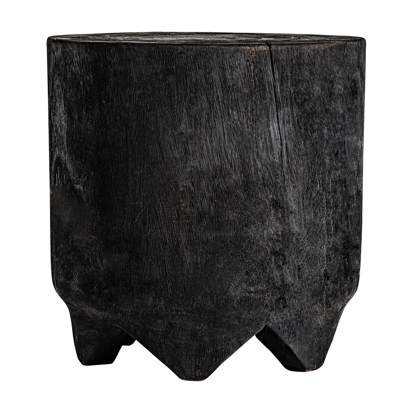 Приставной столик KEPOI, черный потертый цвет, этнический стиль. Изготовлен из обожженного дерева суар.