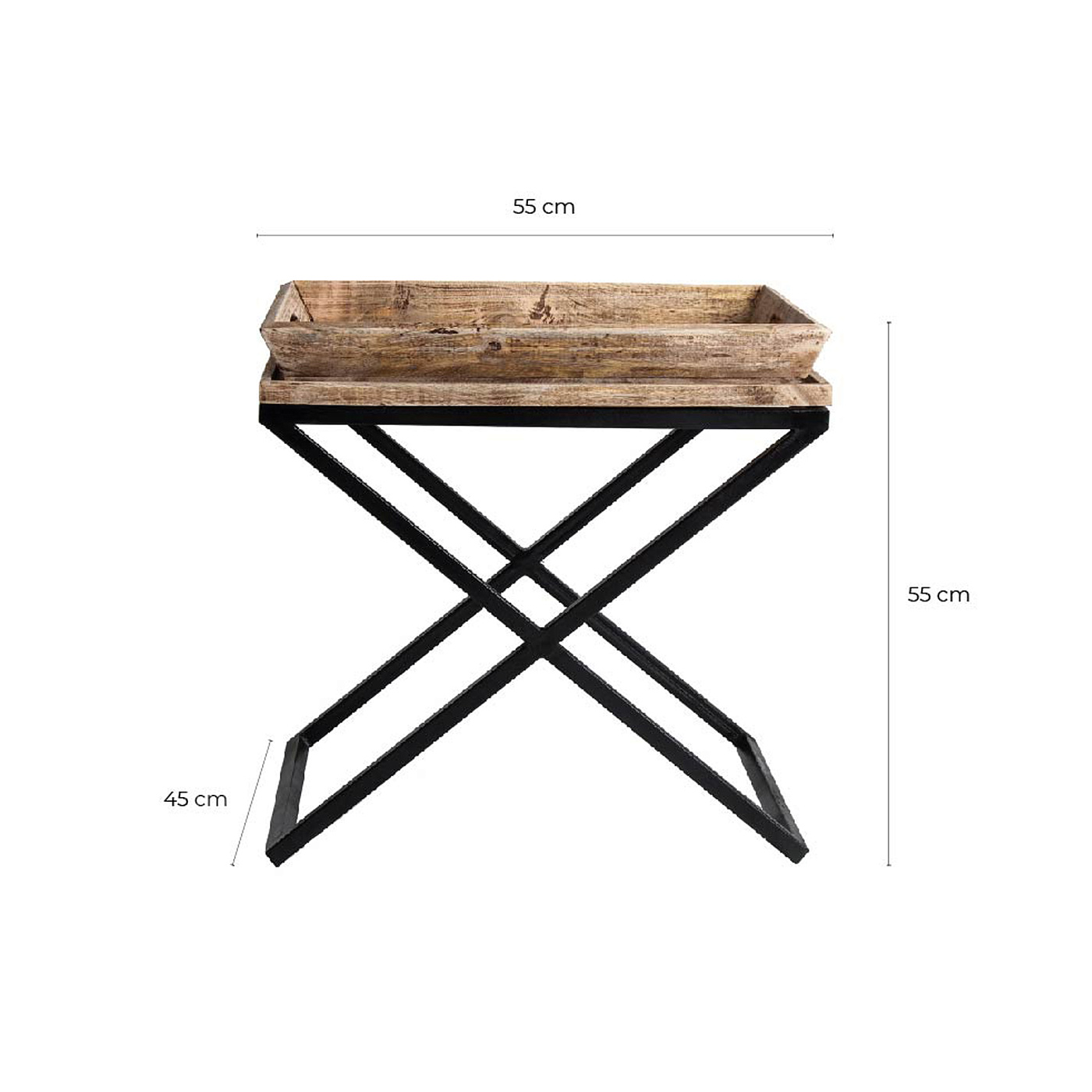 Приставной столик Newak от VICAL home сочетает в себе дизайн и функциональность. Этот столик для гостиной размером 55x45x53 см с подносом, выполненный из древесины манго и украшенный железными деталями, универсален и стилен. Черно-натуральная отделка и дизайн с подносом идеально подходят для современных интерьеров с элементами деревенского стиля. Ширина: 55 см, Глубина: 45 см, Высота: 53 см