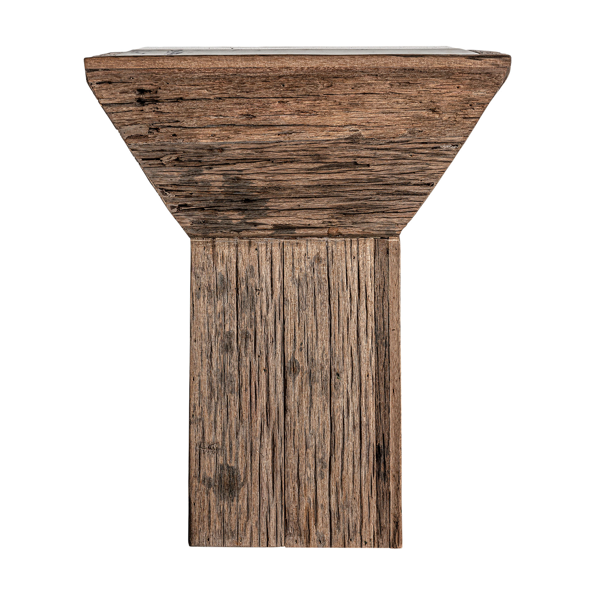 Приставной столик Samsung, цвет натуральный/состаренный белый, в этническом стиле. Изготовлен из переработанной сосновой древесины в сочетании с мрамором. Различные породы дерева: сосна, манго, тик, акация.