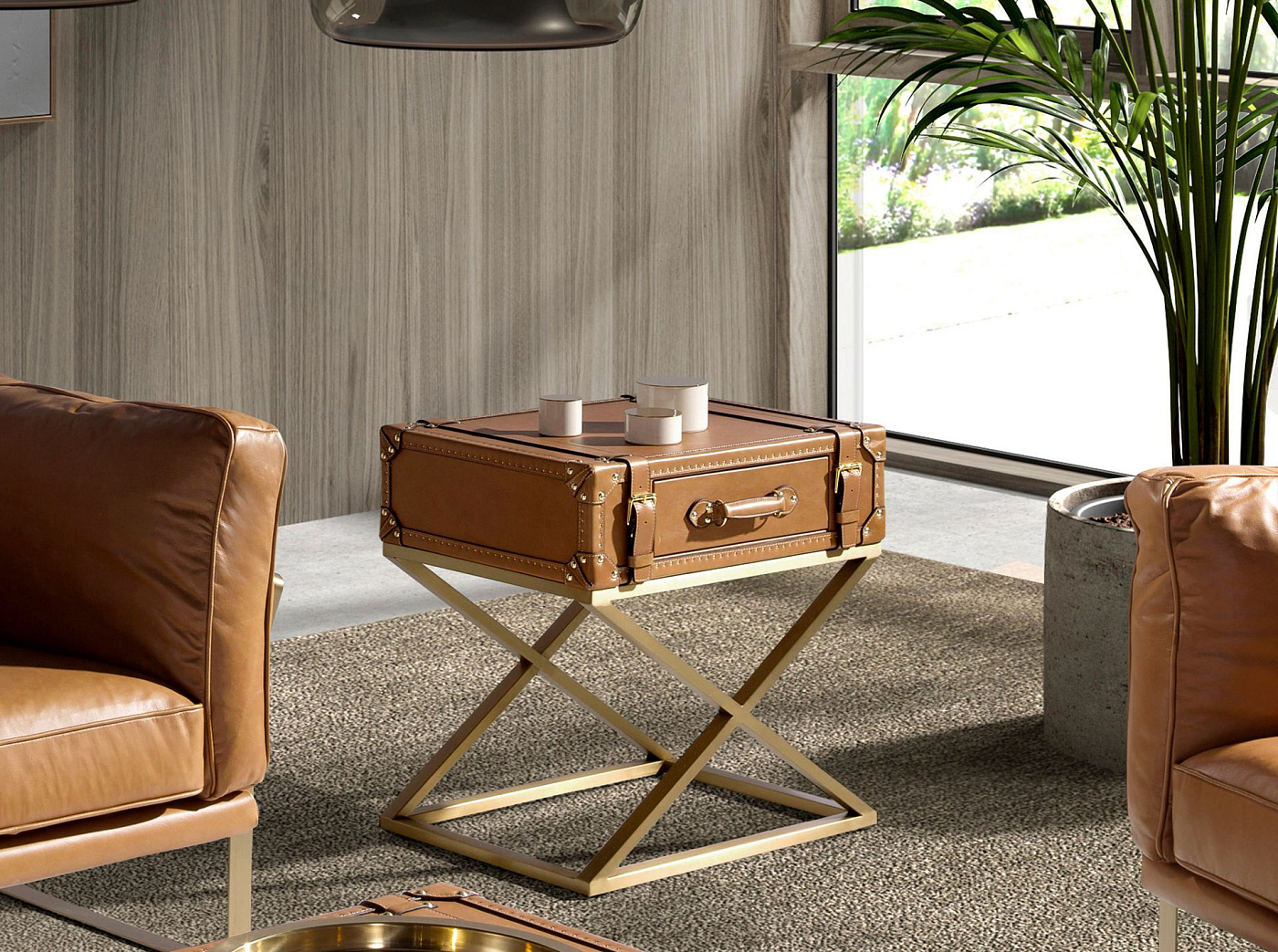 Прямоугольный угловой столик из кожи и золотистой стали 2148