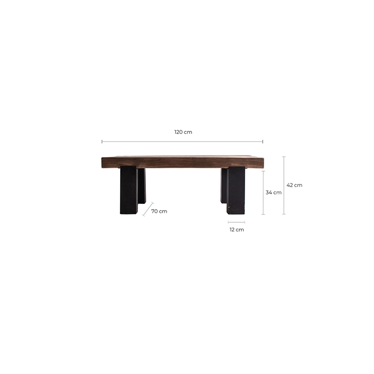 Прямоугольный журнальный столик Tello черного/натурального цвета, колониальный стиль. Изготовлен из переработанной сосновой древесины.