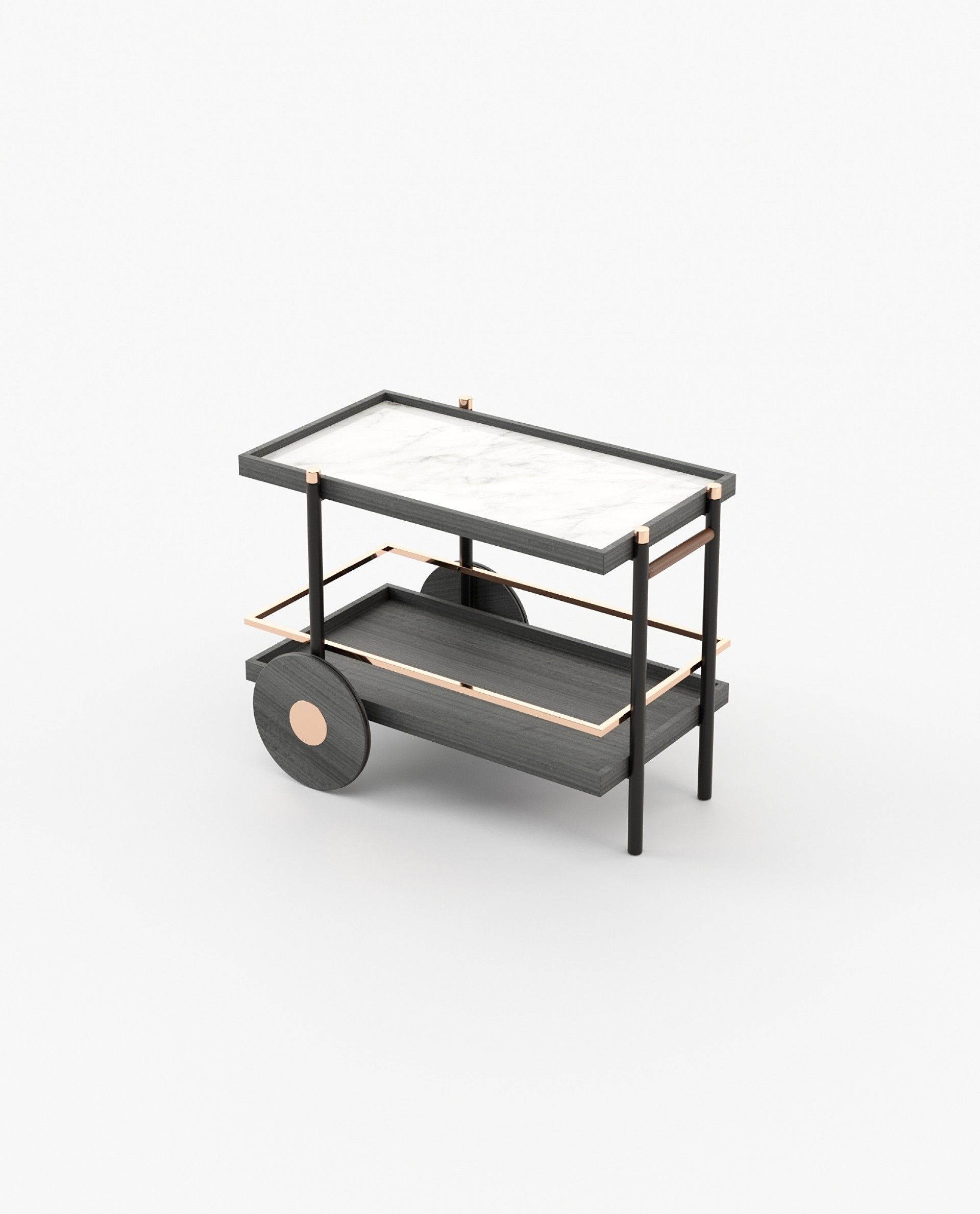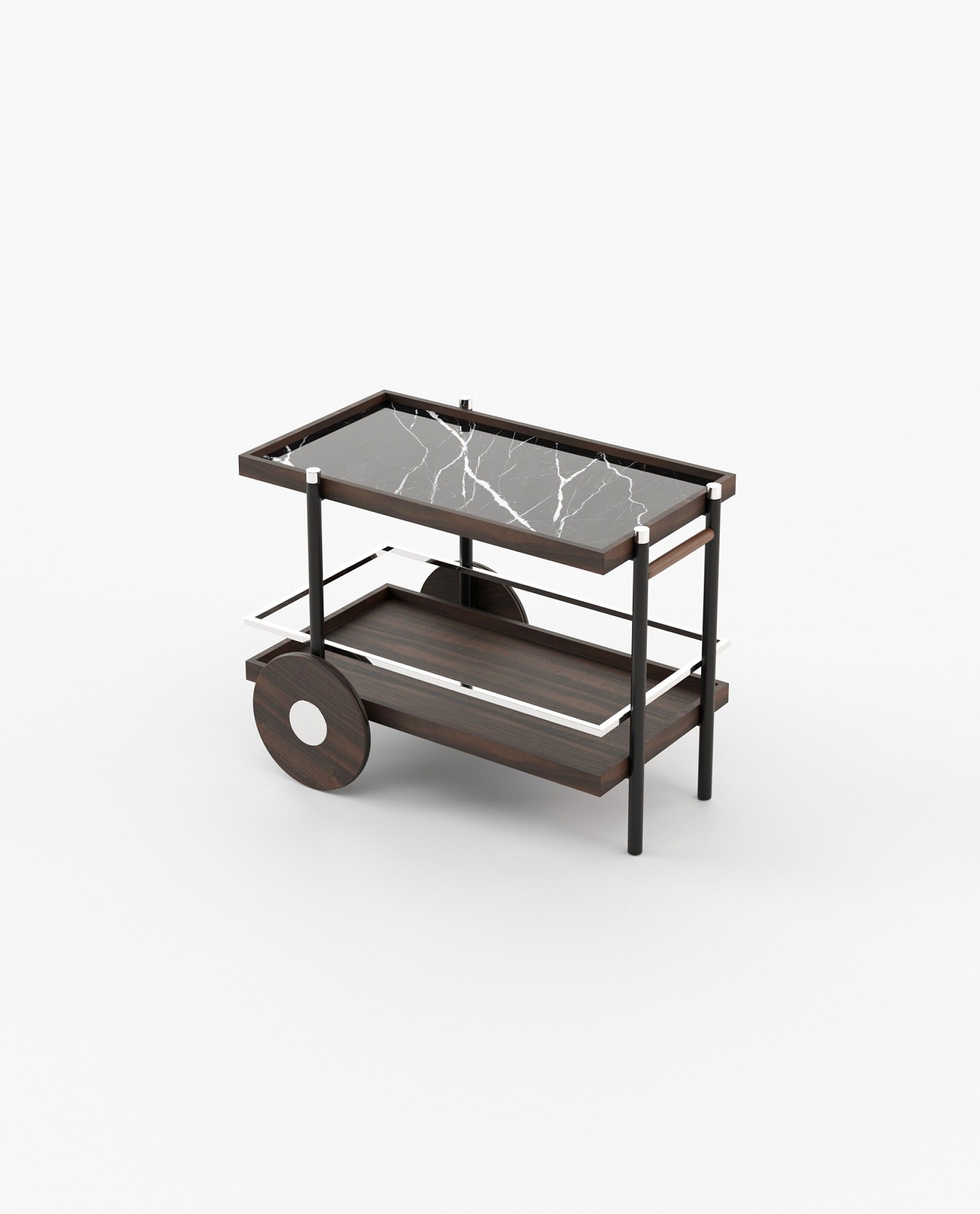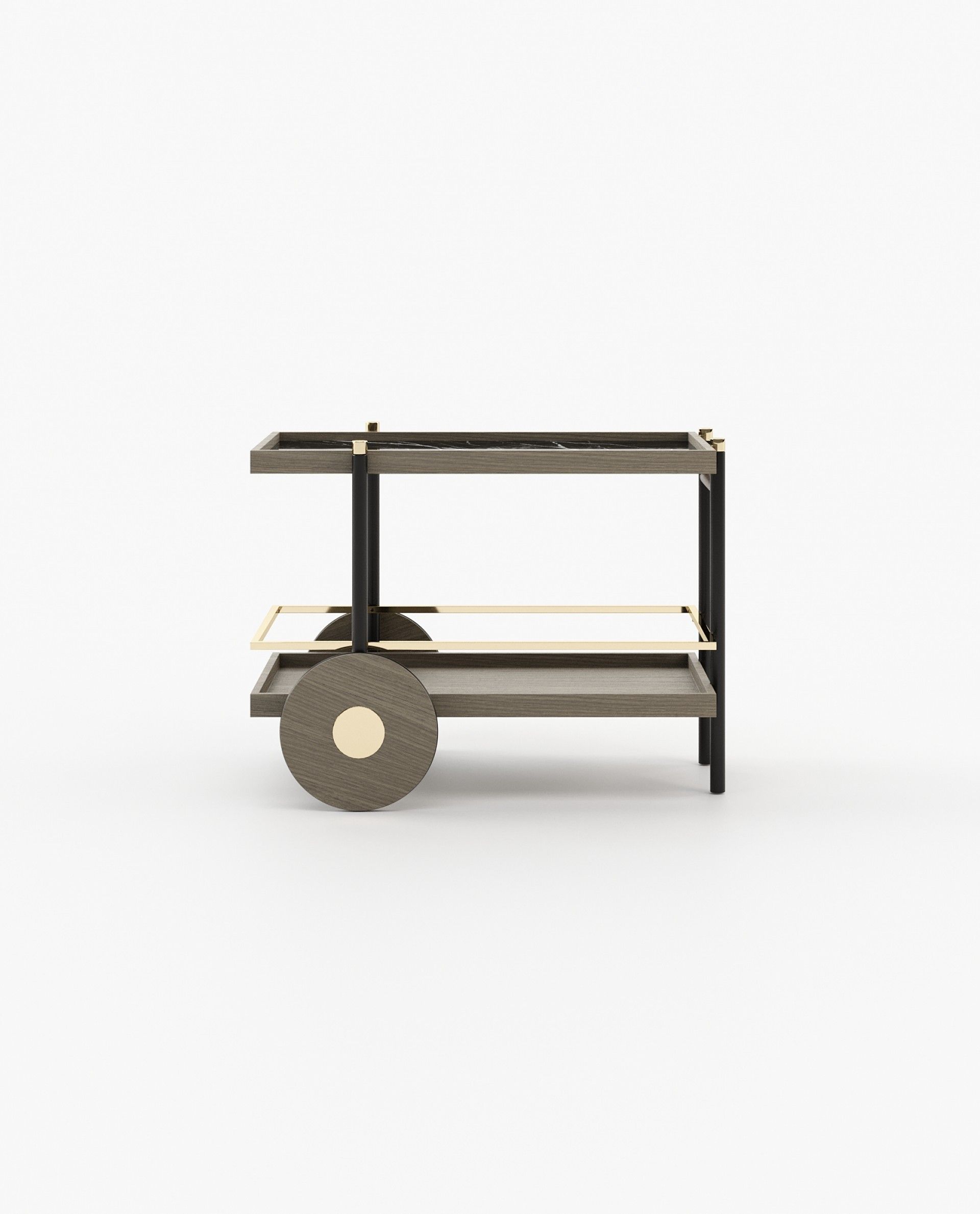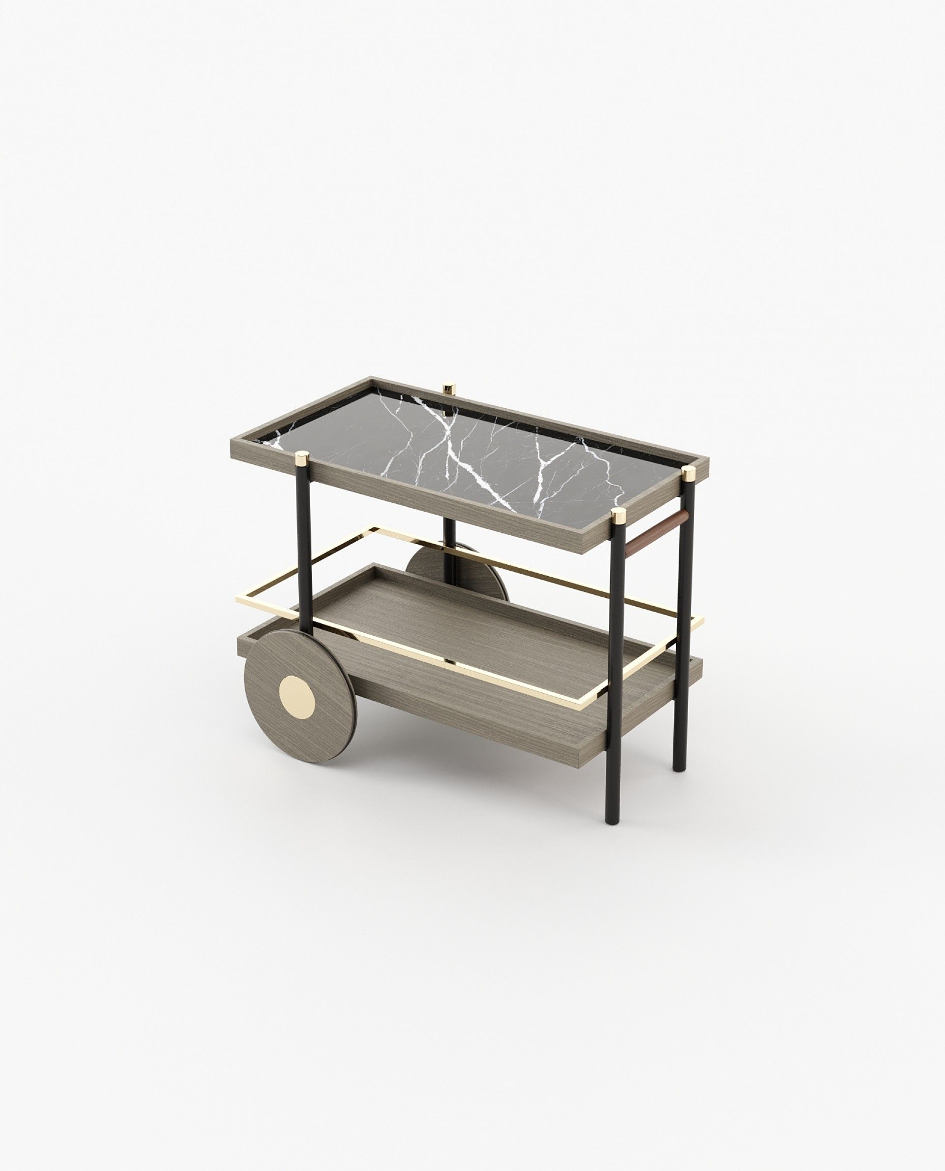 Чайная тележка Pitt - универсальный предмет, идеально подходящий для гостиничных проектов или приема гостей дома. Шикарные железные полки и прочный металлический каркас имеют индивидуальную отделку, а поднос изготовлен из натурального мрамора для придания дополнительной элегантности.