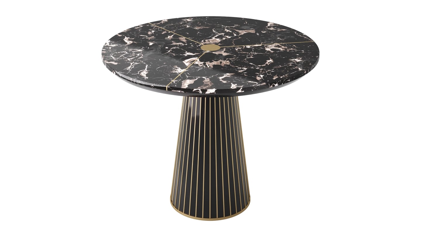 Темный и эффектный модернистский силуэт PINOT II подчеркнут применением завораживающих материалов, таких как камень с глубоким патинированием, глянцевое лакированное дерево и графично выполненная матовая латунь.