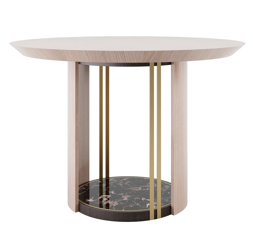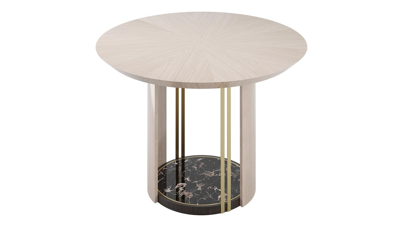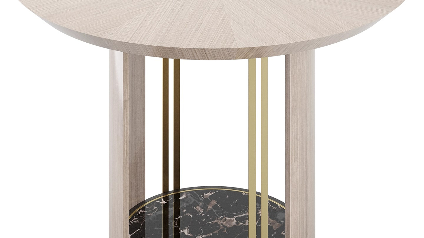 Лаконичная столешница fabulous SENDAI, состоящая из двух половинок, придает драматизм дизайну подставки, искусно выполненной из патинированного камня, гладкого деревянного шпона и блестящей матовой латуни.