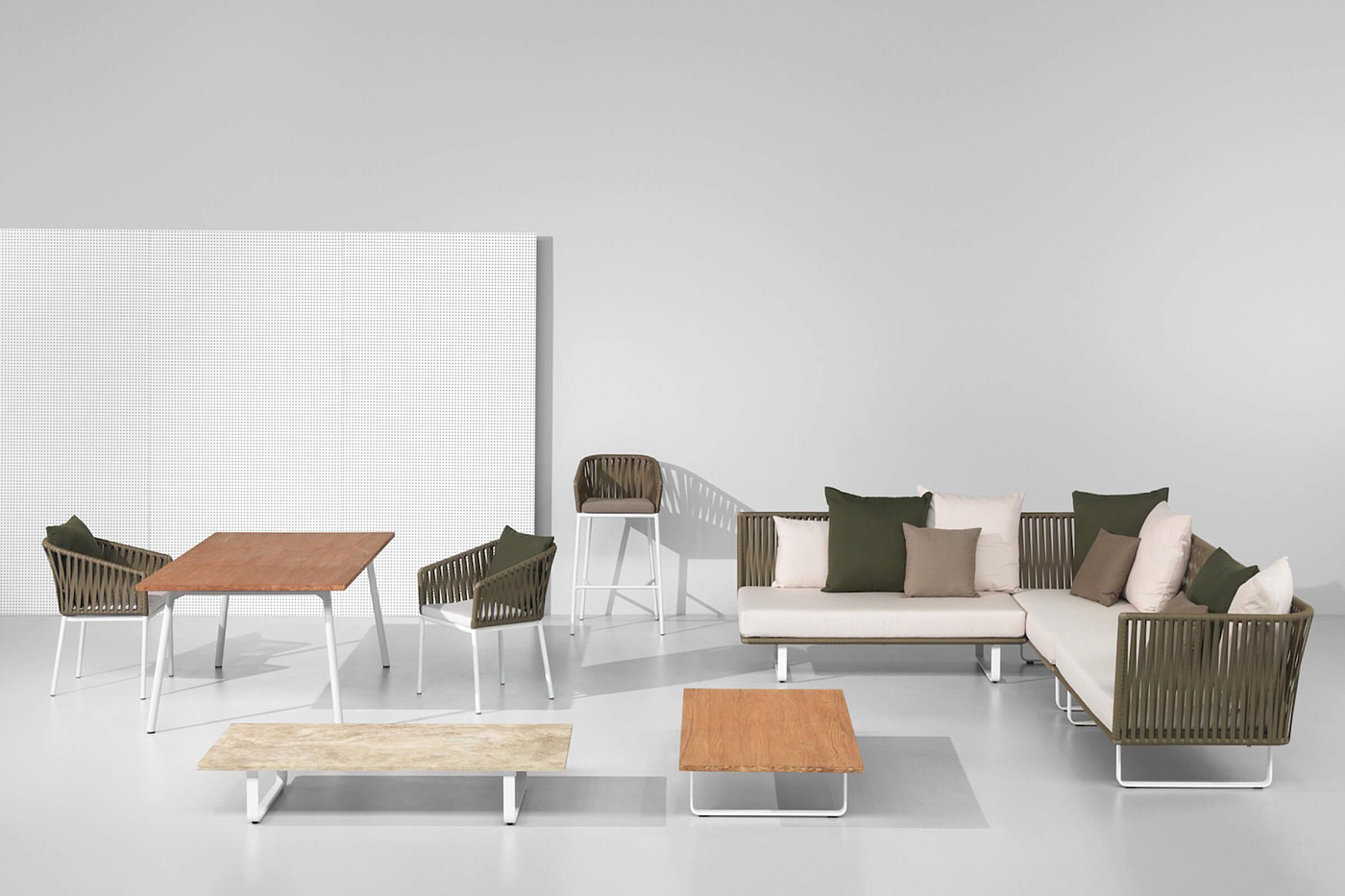 Для Kettal Bitta характерно сочетание алюминиевых и тиковых рам, сидений из плетеного полиэстера и удобных подушек, столешниц из тикового дерева или камня - и все это с использованием всех водонепроницаемых материалов. “Намерение дизайнера состояло в том, чтобы создать плотную оплетку, которая все еще пропускала бы воздух, напоминающую оплетку канатов, используемых для швартовки лодок (отсюда и название Bitta, что в переводе с итальянского означает "швартовка"), благодаря чему изделия выглядят легкими, но в то же время они выглядят прямо как уютные гнездышки в естественных тонах, в которых можно посидеть и расслабиться.”