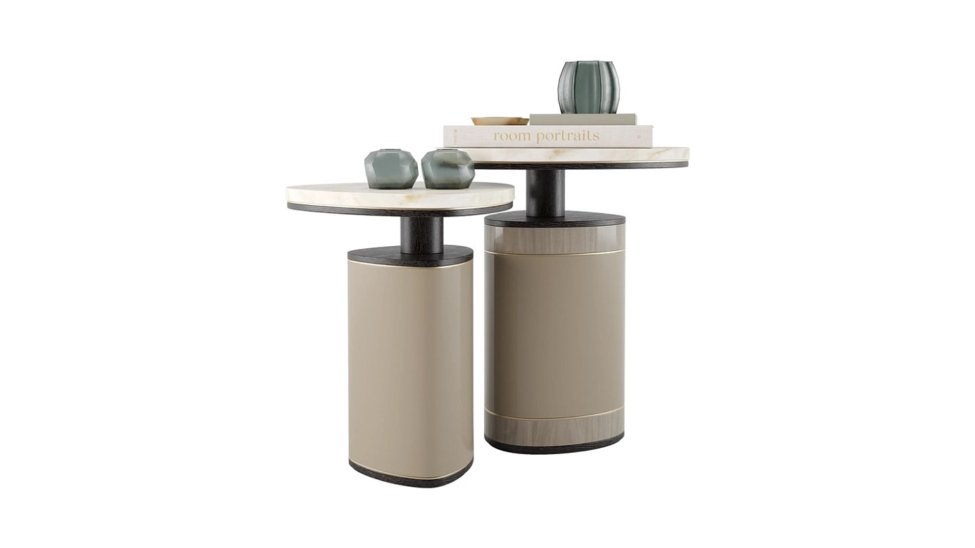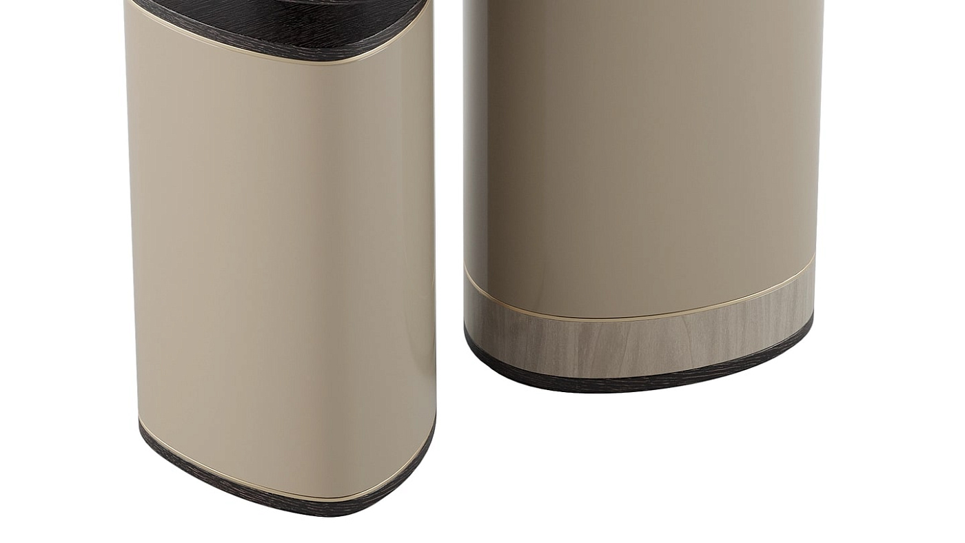 Дизайн ANTWERP придает свежую форму нашим двухобъемным приставным столикам с их мягкой треугольной поверхностью и подставкой, в то время как палитра экзотического шпона, глянцевого лака, матовой латуни и гладкого мрамора позволяет им гармонично вписаться в нашу более широкую коллекцию.