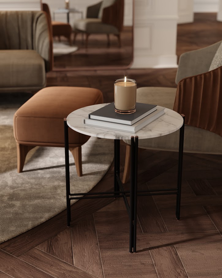 Бамбук, как известно, одно из самых крепких и элегантных деревьев в природе. Поэтому металлические трубчатые профили ножек, соединенные металлическими деталями, которые удерживают уникальную круглую мраморную столешницу, вдохновили нас на создание центрального стола Bamboo, придающего любому разделению комнаты стильный штрих и характер.