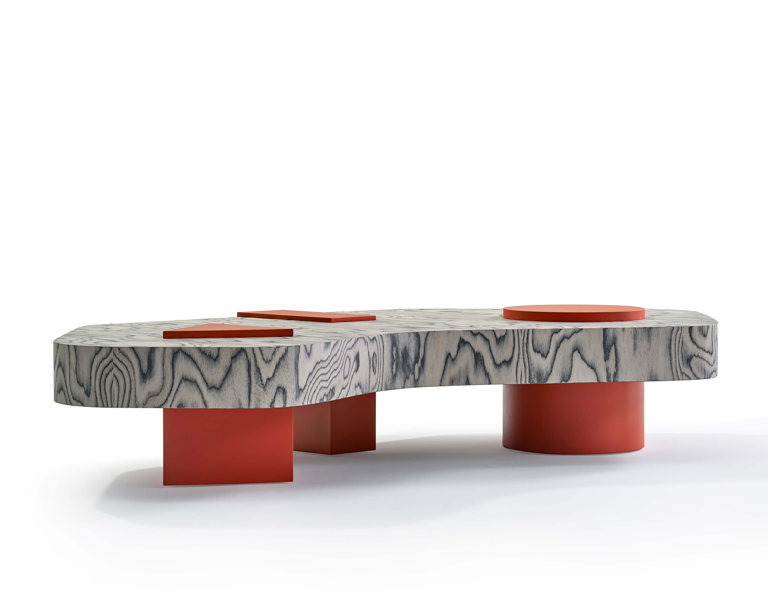 Скульптурное изделие, отдающее дань уважения харизматичному и непринужденному стилю Мемфиса. Bold - это стол смелых форм и размеров XL, разработанный студией Studiopepe. Верхняя часть характеризуется увеличенным профилем и неправильными очертаниями, в то время как из нее вытекают три основные геометрические формы (прямоугольник, круг и треугольник), создавая динамичную визуальную игру, поскольку каждая из них проявляется на разном уровне. Эти элементарные формы на самом деле являются ножками, которые появляются на поверхности, через которую они проходят. Несмотря на свои большие размеры, Bold объединяет пространство, создавая плавные и элегантные переходы. Исследование новых сочетаний является постоянным в работе Кьяры и Арианны, поэтому сочетание различных материалов является еще одной отличительной чертой этого дизайна. Несомненно, это техническая задача для Sancal, в которой эксперименты и промышленность снова встречаются. Bold доступен в различных материалах и отделке. С одной стороны, у нас есть двухцветная версия, в которой можно выбрать один тон для ножек и другой для столешницы, либо из МДФ, шпона ясеня, либо с уникальным винтажным шпоном дизайнерского издания. Существуют также одноцветные варианты, доступные в глянцевых лаках Lima или Tabaco или в любом цвете из экстра-матовой гаммы. Одноцветные варианты подчеркивают скульптурную сторону Bold, в то время как дизайнерское издание, несомненно, является самым культовым. Этой версией миланская студия напоминает о недавнем прошлом итальянского дизайна, отдавая дань уважения Memphis group, одному из самых непочтительных художественных течений второй половины 20-го века.