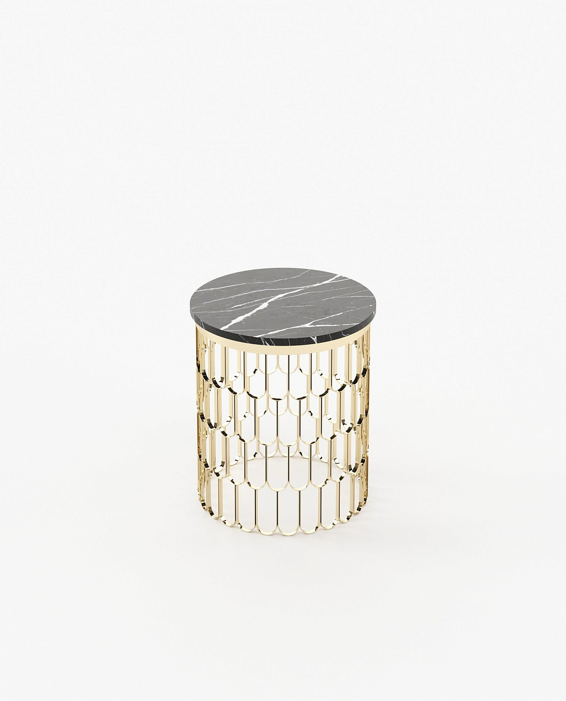 Приставной столик Brenda стильный на основе металла и столешницей из мрамора. Стол для поддержки женской и moderna для гостиной, изящные.