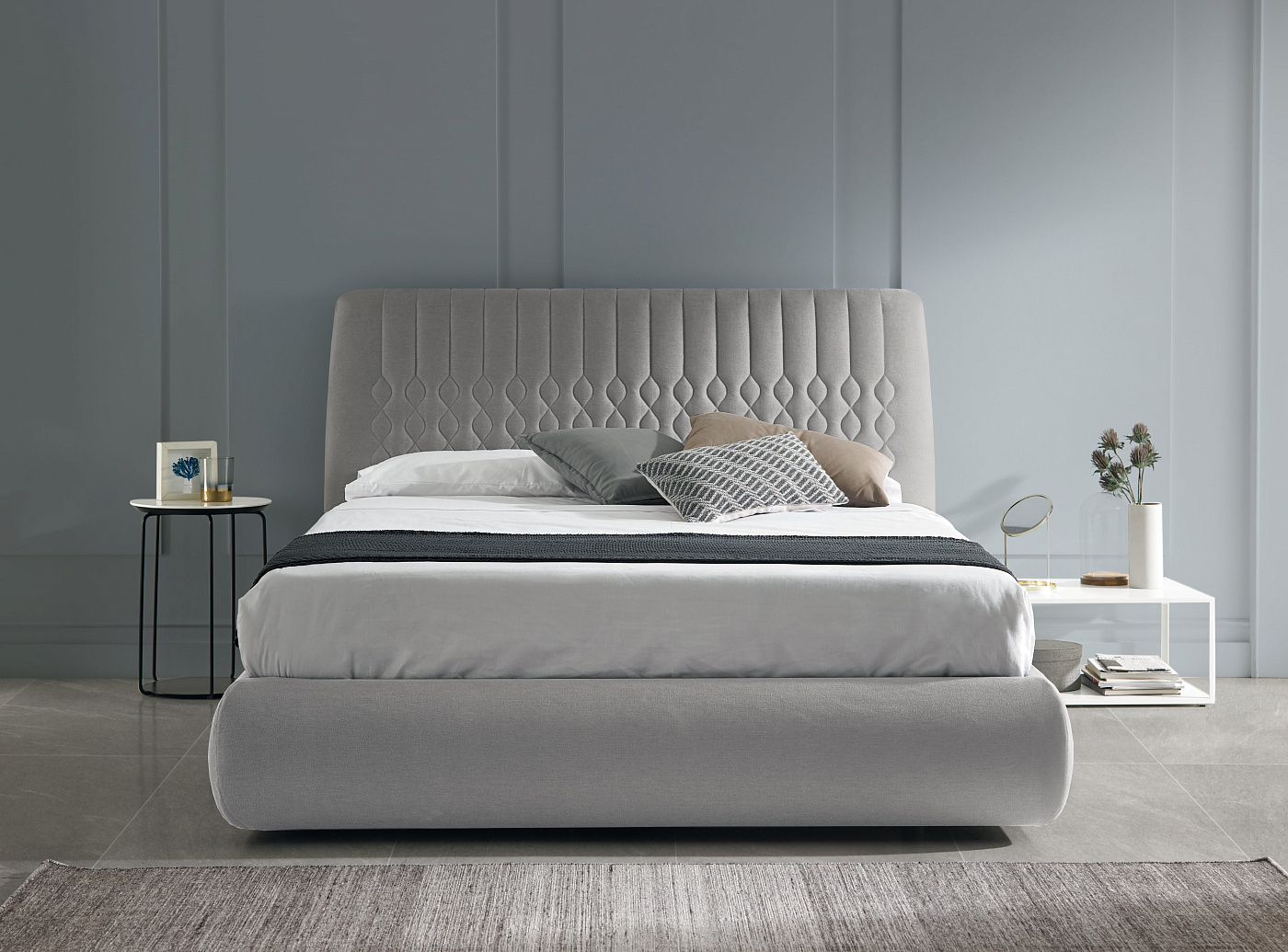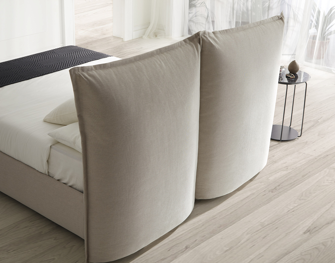 Изящность конструкции прикроватных тумбочек Cava идеально сочетается с элегантностью столешниц. Основа создает иллюзию теней, что придает объемность изделию, которое кажется очень светлым. Разная высота и пропорции дают возможность создать ансамбль, в котором обе части гармонично сочетаются друг с другом.
