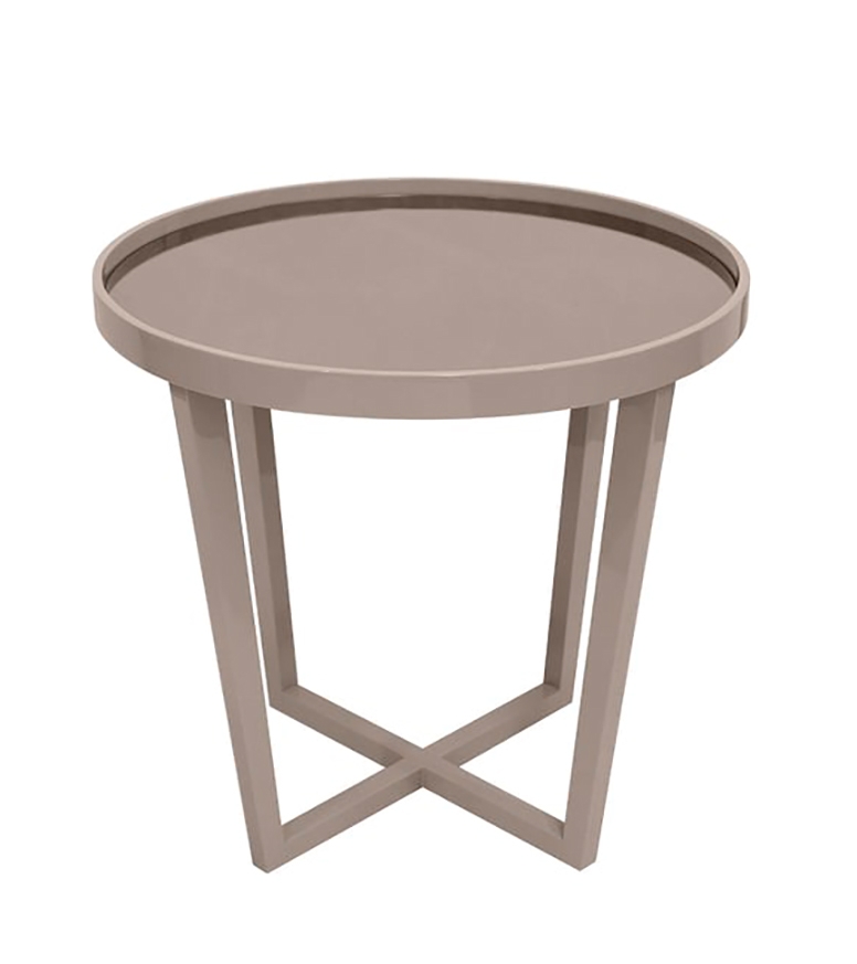 Минималистичный приставной столик DURBAN I, изготовленный всего из двух тональных материалов, олицетворяет красоту и универсальность простоты. Его скульптурное основание с четкой облицовкой изготовлено из глянцевого лакированного дерева и сочетается с бронзово-зеркальной поверхностью, которая загадочно отражает окружающую обстановку.