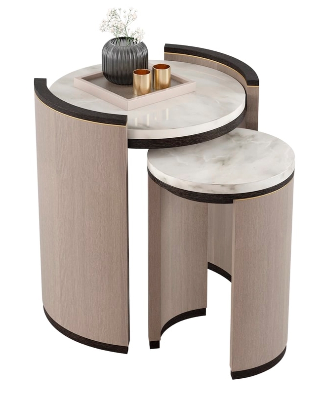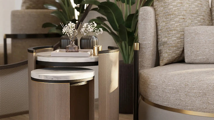 Вдохновленный нашим популярным журнальным столиком CEUTA, изысканный приставной столик CEUTA сочетает в себе закругленные края и гладкие поверхности с превосходной палитрой камня, шпона, массива дерева и матовой латуни. Чтобы все выглядело аккуратно, просто вставьте меньший объем под больший, когда это не требуется.