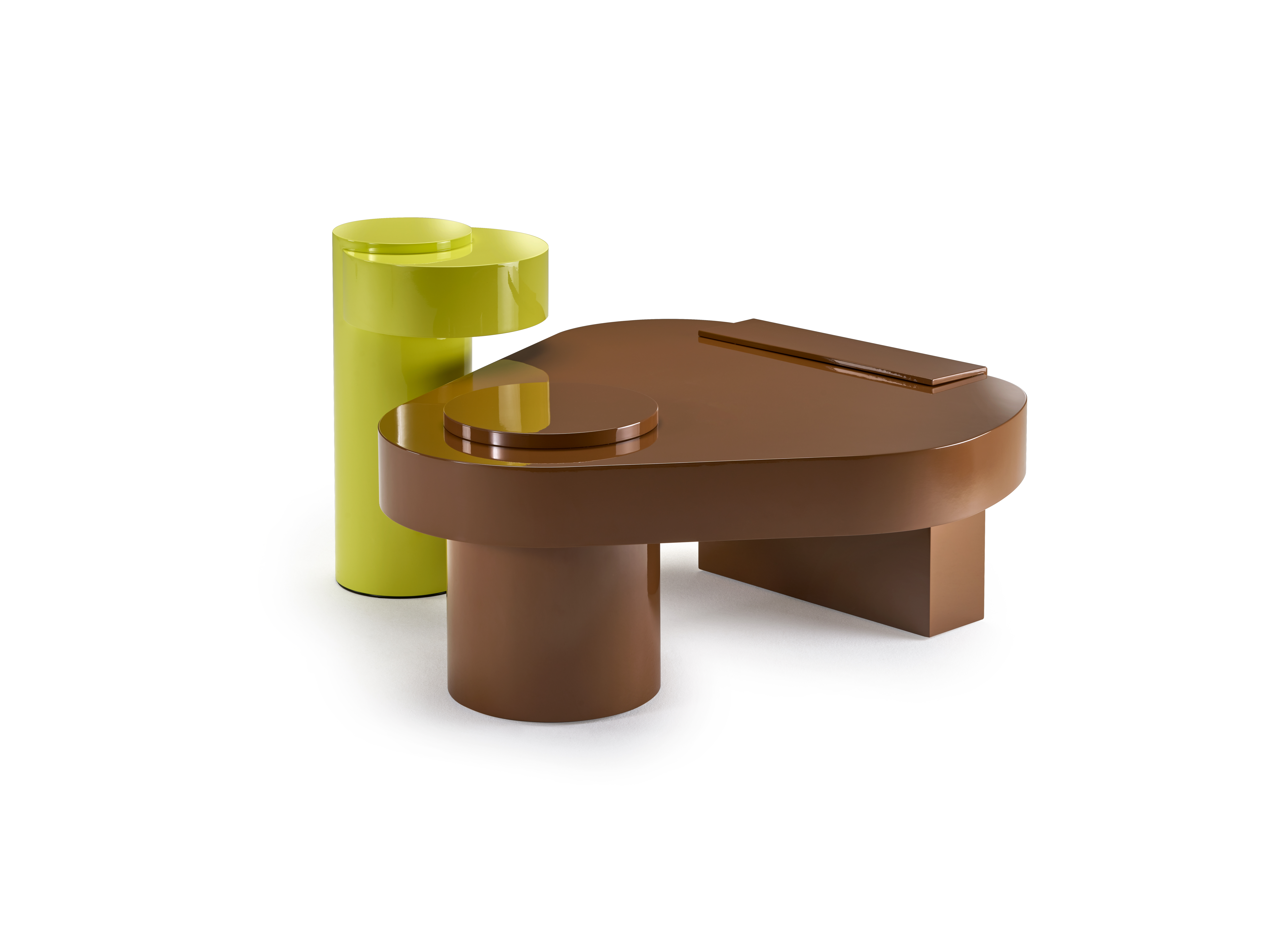 Bold - это стол смелых форм и размеров XL, разработанный студией Studiopepe. Столешница отличается увеличенным профилем и неправильными очертаниями, в то время как из нее выделяются три основные геометрические формы (прямоугольник, круг и треугольник), создавая динамичную визуальную игру, поскольку каждая из них проявляется на своем уровне. Эти элементарные формы на самом деле являются ножками, которые появляются на поверхности, через которую они проходят.