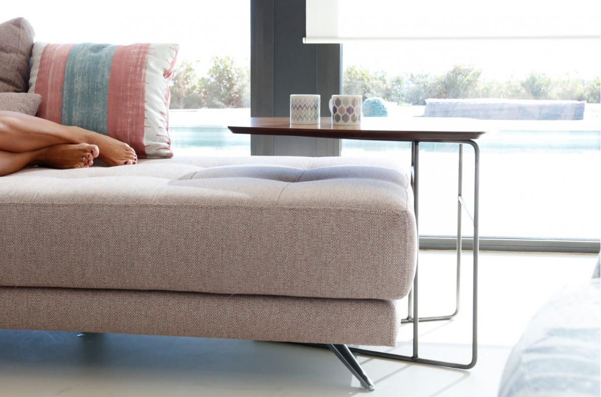 Luke - это новый стол для аксессуаров с металлическими ножками, который можно адаптировать к любому дивану или креслу. Доступен с журнальной стойкой.