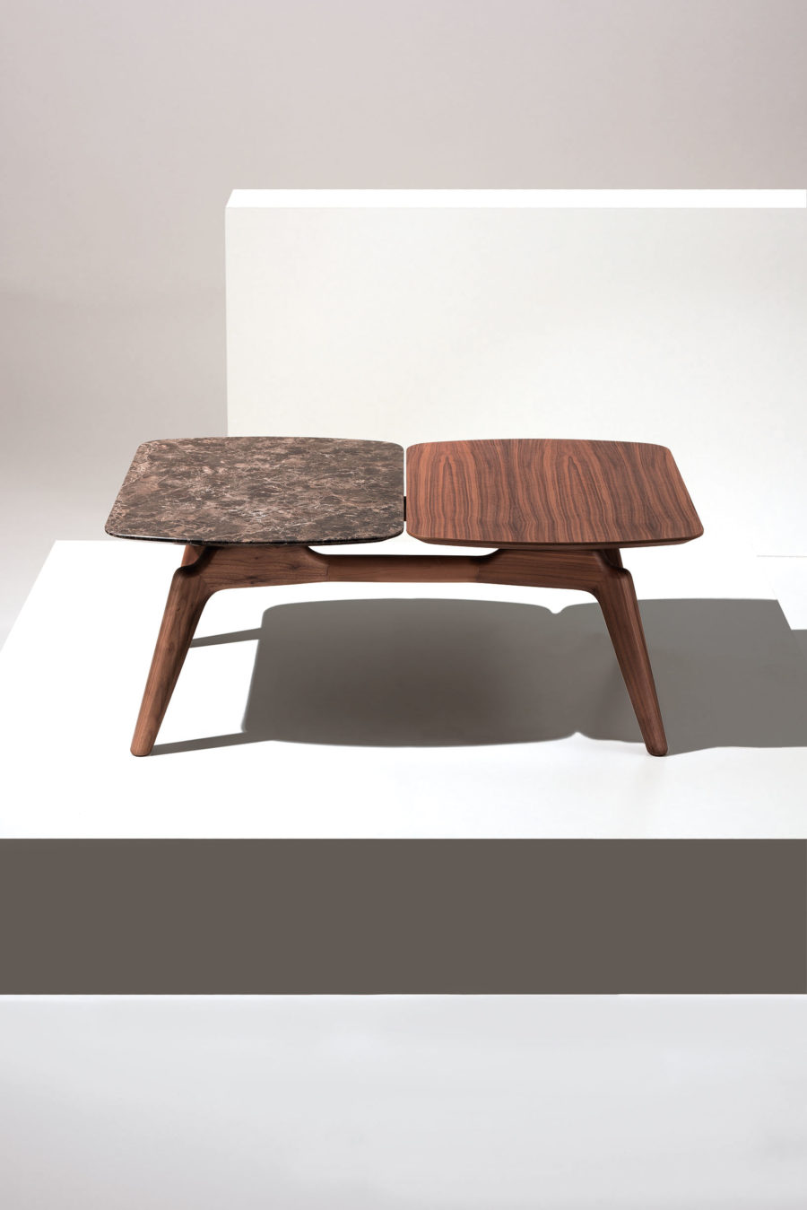 Элегантный стол с яркой индивидуальностью и великолепным внешним видом, который не останется незамеченным. Орех сочетается с золотом Calacatta, мрамором Sahara Noir или Emperador. Доступен в двух размерах: 90 см x 60 см x высота 36 см и 90 см x 90 см x высота 36 см.