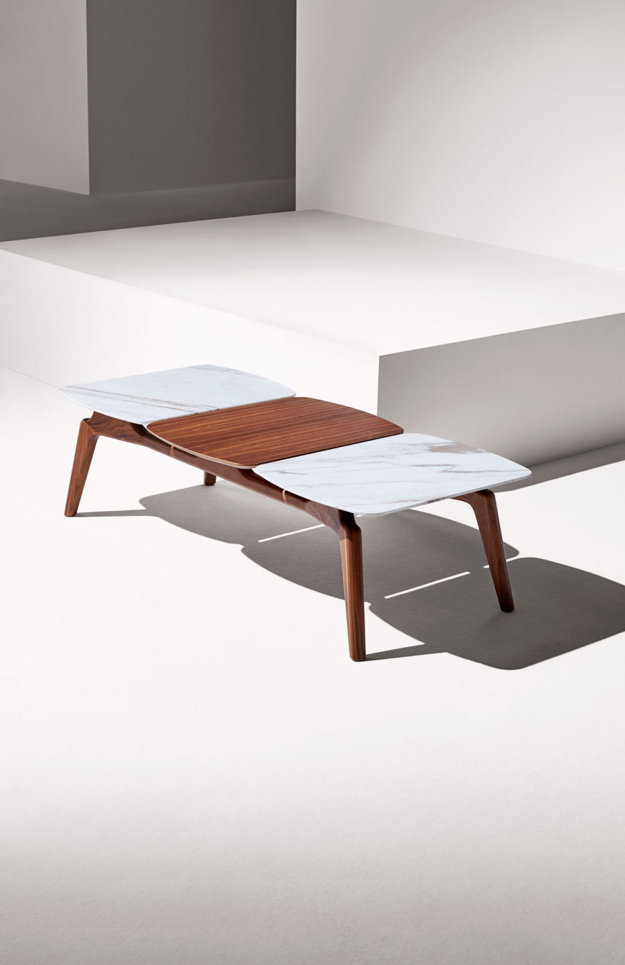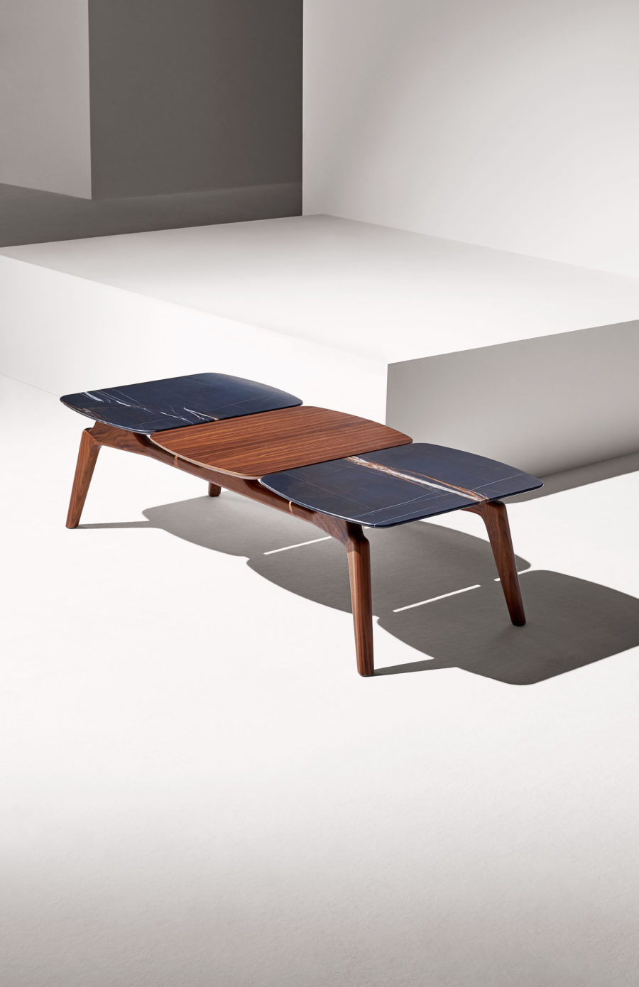 Его привлекательный дизайн позволяет конфигурировать столы разных размеров, сочетая орех с золотом Calacatta, мрамором Sahara Noir или Emperador. Его дизайн приглашает вас принять участие в творчестве. Доступен в двух размерах: