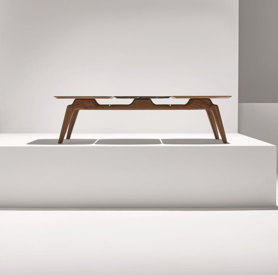 Его привлекательный дизайн позволяет конфигурировать столы разных размеров, сочетая орех с золотом Calacatta, мрамором Sahara Noir или Emperador. Его дизайн приглашает вас принять участие в творчестве. Доступен в двух размерах: