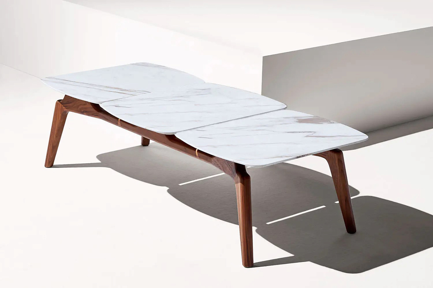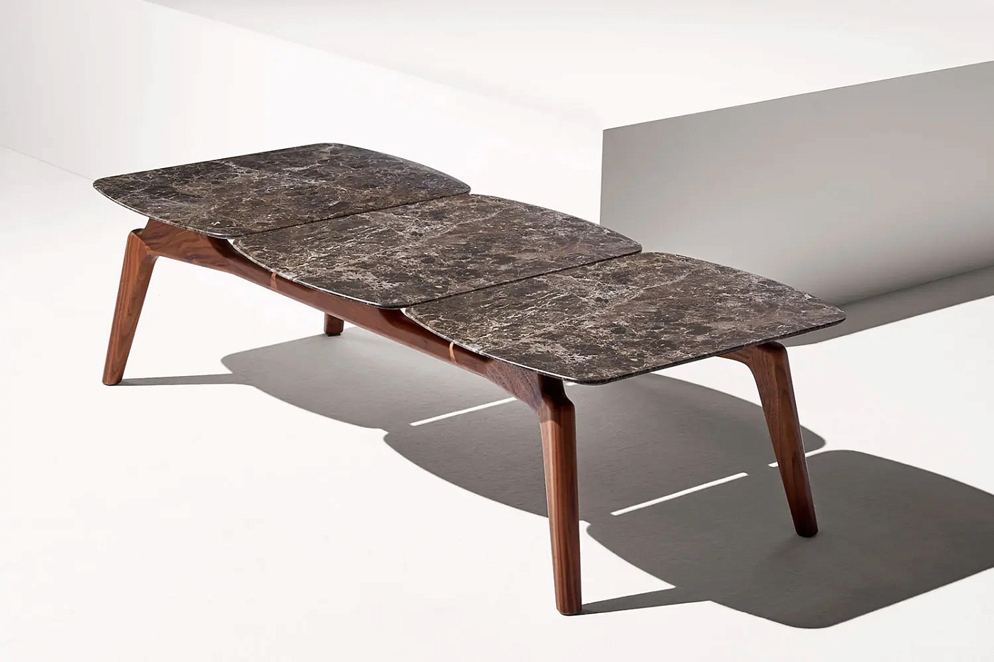 Его привлекательный дизайн позволяет конфигурировать столы разных размеров, сочетая орех с золотом Calacatta, мрамором Sahara Noir или Emperador. Его дизайн приглашает вас принять участие в творчестве. Доступен в двух размерах: