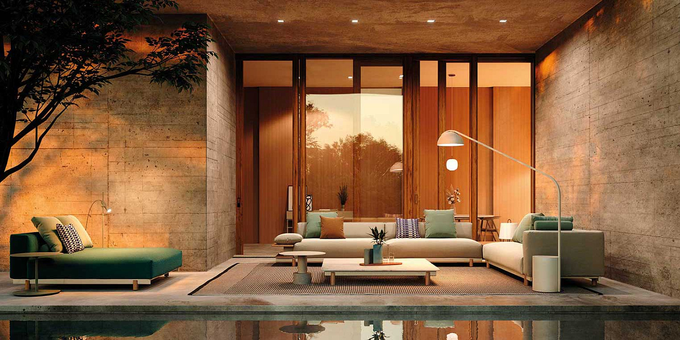 Это пример модульного дивана в чистом виде. Его ортогональная геометрия основана на прямоугольной модульной конструкции, что означает, что его можно легко адаптировать к любой ситуации и оптимизировать пространство, в котором он находится. Каждый модуль можно разобрать и реорганизовать, создавая новые области применения и конфигурации. Дизайн эстетически минималистичен, с намеренно увеличенными деталями. С другой стороны, декоративные элементы сознательно не были подчеркнуты, чтобы подчеркнуть различные сочетания тканей, цветов и тщательно подобранных деталей. “Моло, или пирс по-английски, джете по-французски и эмбаркадеро по-испански, - это сооружение, построенное на берегу океана, моря, озера или реки, которое простирается от суши над водой; место швартовки лодок, отдыха между поездками и убежища от набегающих волн. Возвращение на твердую землю и к людям. Molo by Kettal предлагает место для расслабления и воссоединения”..