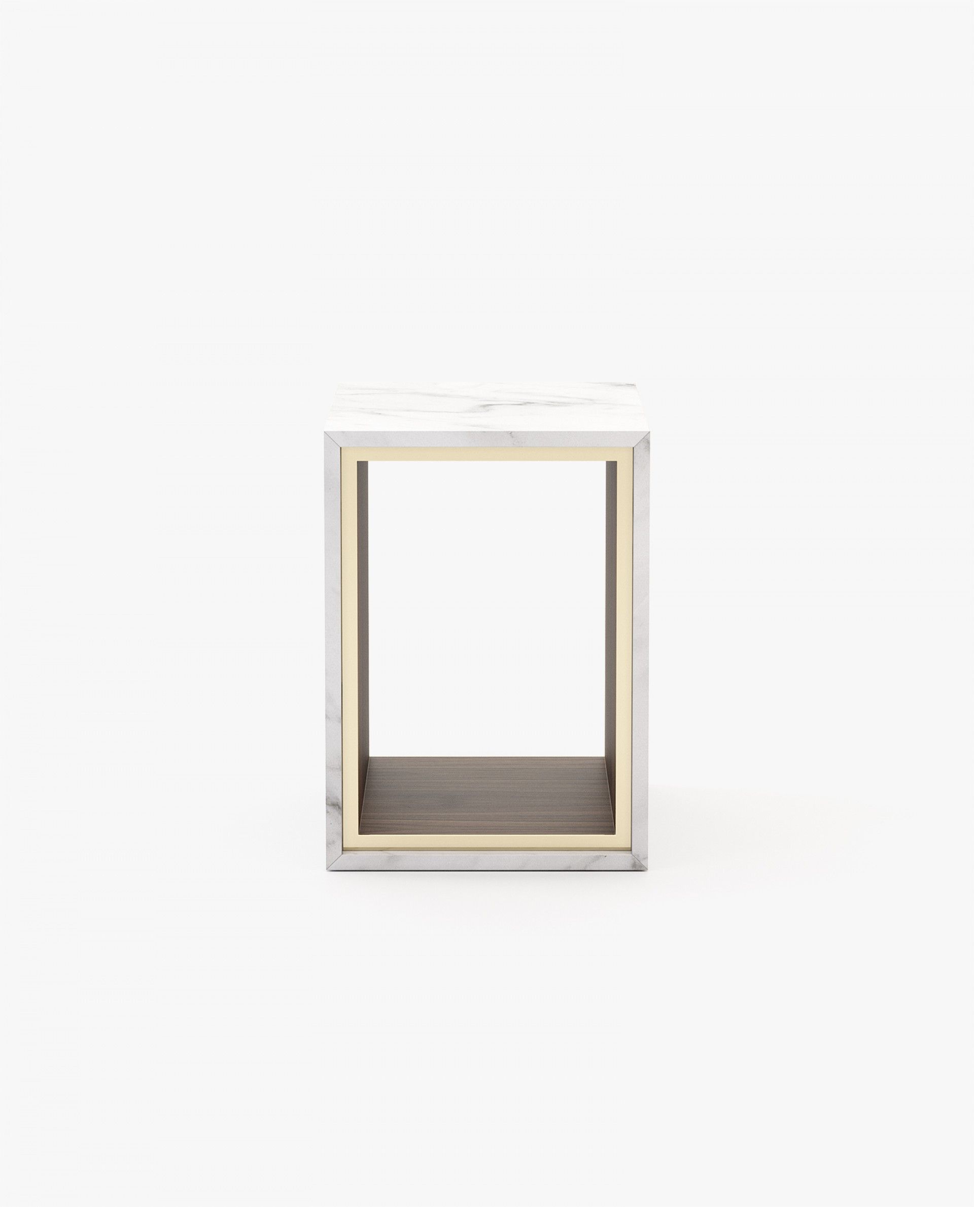 Nilo — это прямоугольный приставной столик, который выделяется своей столешницей из цельного мрамора или деревянного шпона, дополненной деревянной внутренней частью. Этот уникальный и современный предмет идеально подходит для гостиных и спален, предлагая сочетание эстетики и функциональности, необходимое для любого проекта дизайна интерьера.