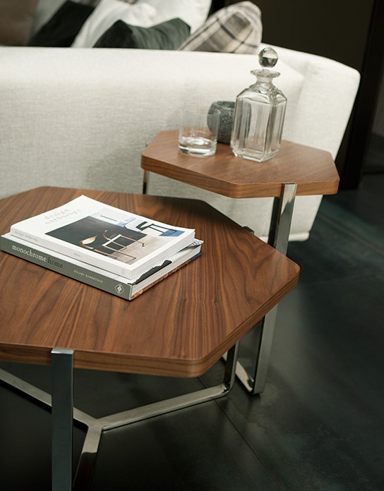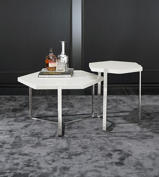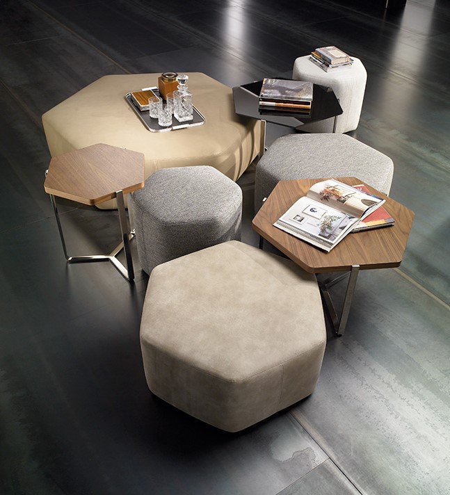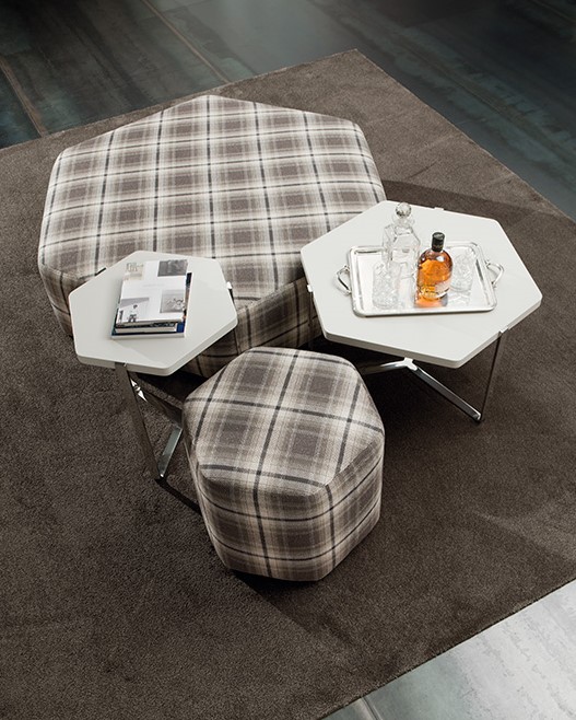 Коллекция столов Prince сделана из деревянных и/или лакированных стеклянных шестиугольников. Его металлическая структура разработана таким образом, что позволяет столам разных размеров и высоты взаимодействовать друг с другом. Его шестиугольная форма позволяет полностью объединить его с коллекцией пуфов Sixties для создания больших зон отдыха.