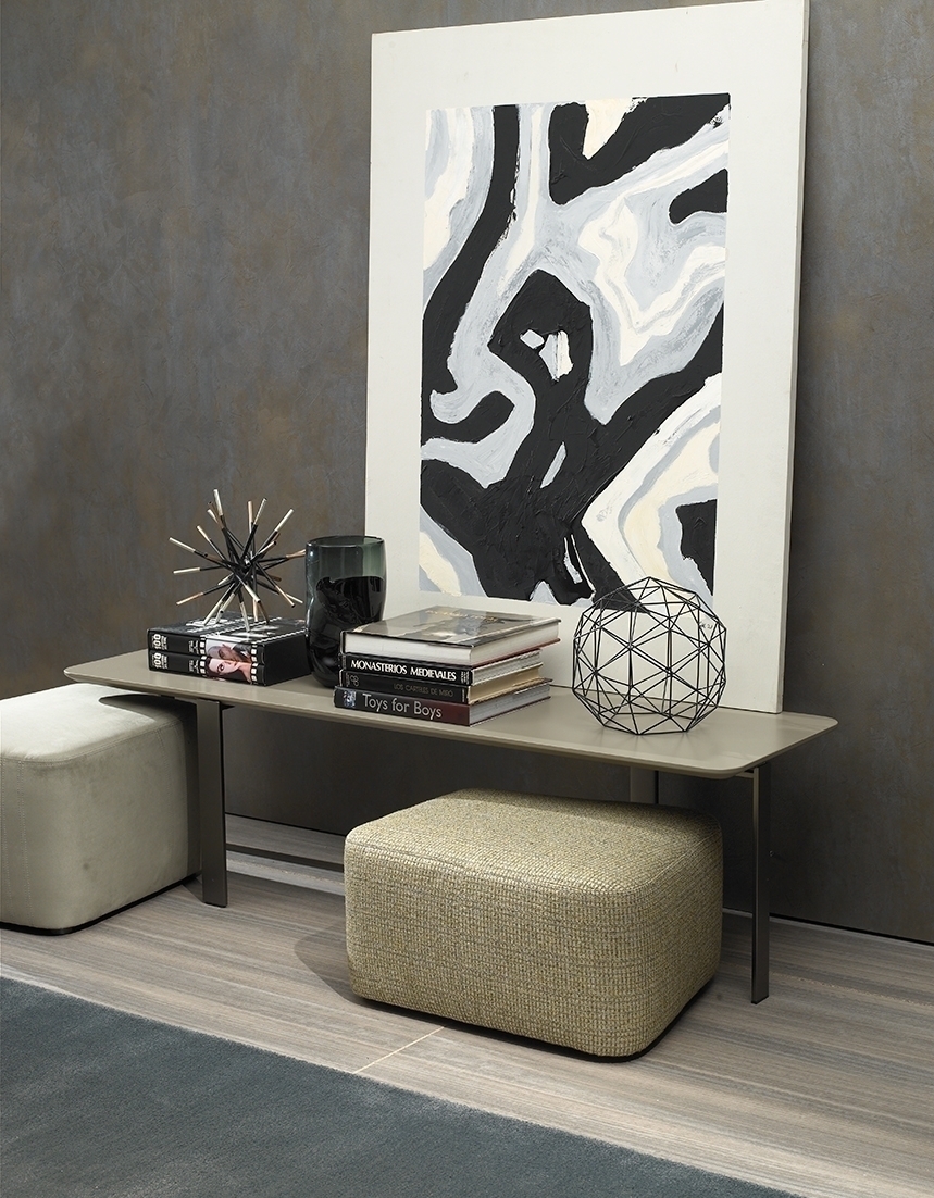 Коллекция столов Puzzle поставляется с лакированными столешницами или с отделкой из деревянного шпона. Металлическая конструкция спроектирована таким образом, что столы разного размера и разной высоты могут взаимодействовать друг с другом. Формат столиков согласован с коллекцией пуфов Enigma, что позволяет создавать просторные и гибкие центральные группы. Такое сочетание элементов позволяет варьировать их в зависимости от реальных требований, их можно использовать по отдельности как в домашних условиях, так и для современного использования по контракту. В коллекцию также входят квадратные журнальные столики и консольные столики для установки в задней части дивана