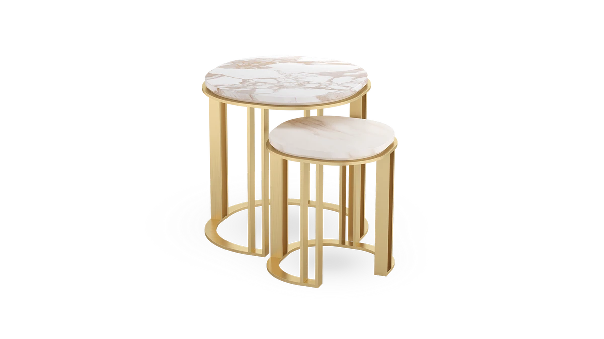 Незавершенное круглое основание придает оригинальности тартускому приставному столику, позволяя двум скульптурным объемам легко прилегать друг к другу. Эта итерация дизайна, состоящая из металлического основания и каменной столешницы, демонстрирует неподвластную времени привлекательность белого мрамора на матовой латуни.