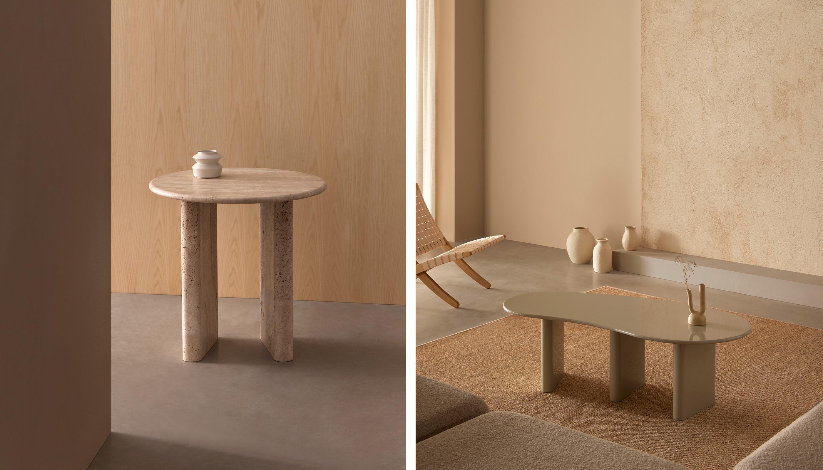 Treviso - это культовая коллекция, состоящая из трех скульптурных столов, которые пересматривают классическую архитектуру с точки зрения эстетики настоящего. В качестве отправной точки возьмем использование травертиновый мрамор, они черпают вдохновение в деталях и пропорциях классическая итальянская архитектура стремясь подчеркнуть присущую материалу чистоту. Округлость ножек и использование травертина напоминают классическое искусство, а органические округлые формы крышки создают современный вид. Столы из коллекции Treviso состоят из столешницы с круглая форма u органический и округлый край и два или три ножки округлой формы. Столы с круглой столешницей имеют симметричную композицию, а их ножки повернуты под одним углом, что создает визуальную и стилистическую сплоченность коллекции. Стол с органической столешницей, со своей стороны, асимметричен и вносит динамизм в ансамбль. У низких столиков три ножки, а у высокого - две. Помимо травертинового мрамора, столешницы Treviso изготавливаются из МДФ с глянцевым лаком. Два материала, которые придают совершенно разную эстетику, демонстрируя универсальность предмета мебели и делая его идеальным для помещений с различными характеристиками и стилями.