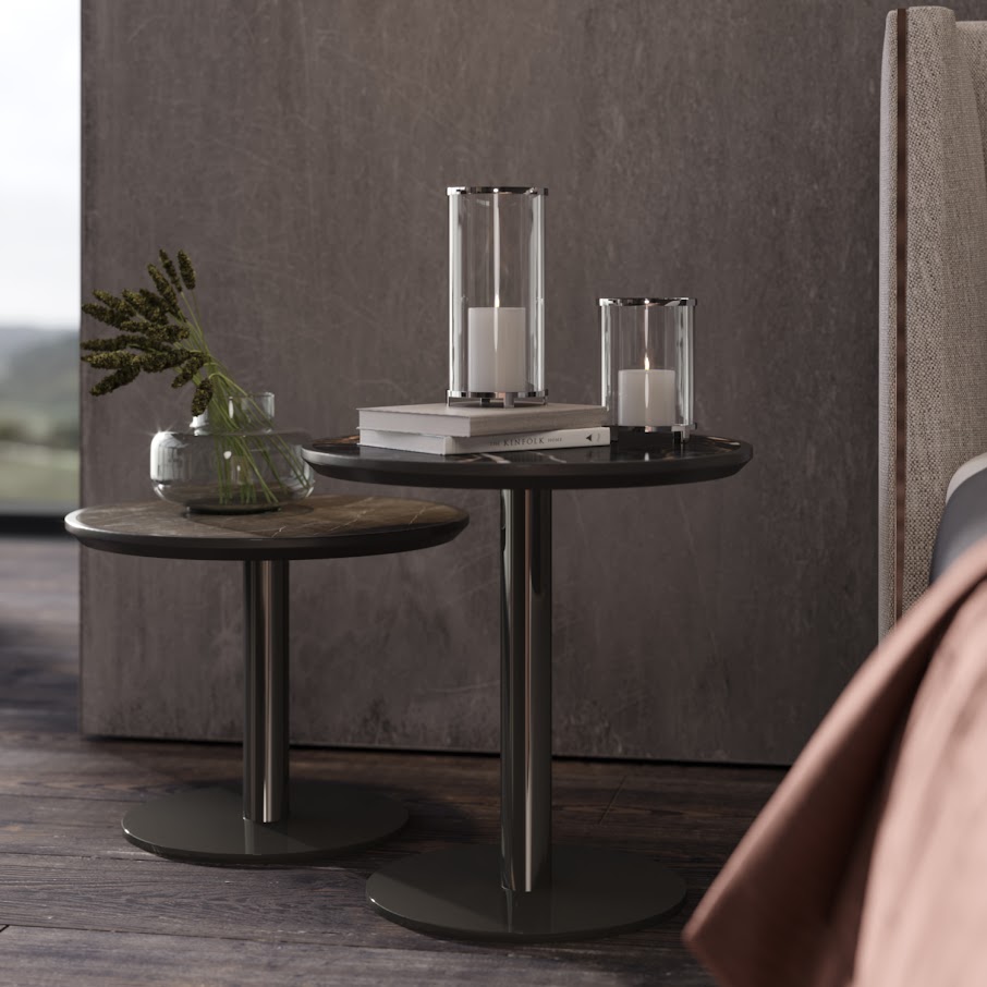 С центральной ножкой, позволяющей самонакладываться, а также с сиденьями, приставные столики Tuxedo демонстрируют сочетание высокоглянцевого лака с экзотическим шпоном на нижней скошенной столешнице. Приставной столик современного дизайна, дополняющий гостиную, где класс и превосходная сдержанность.