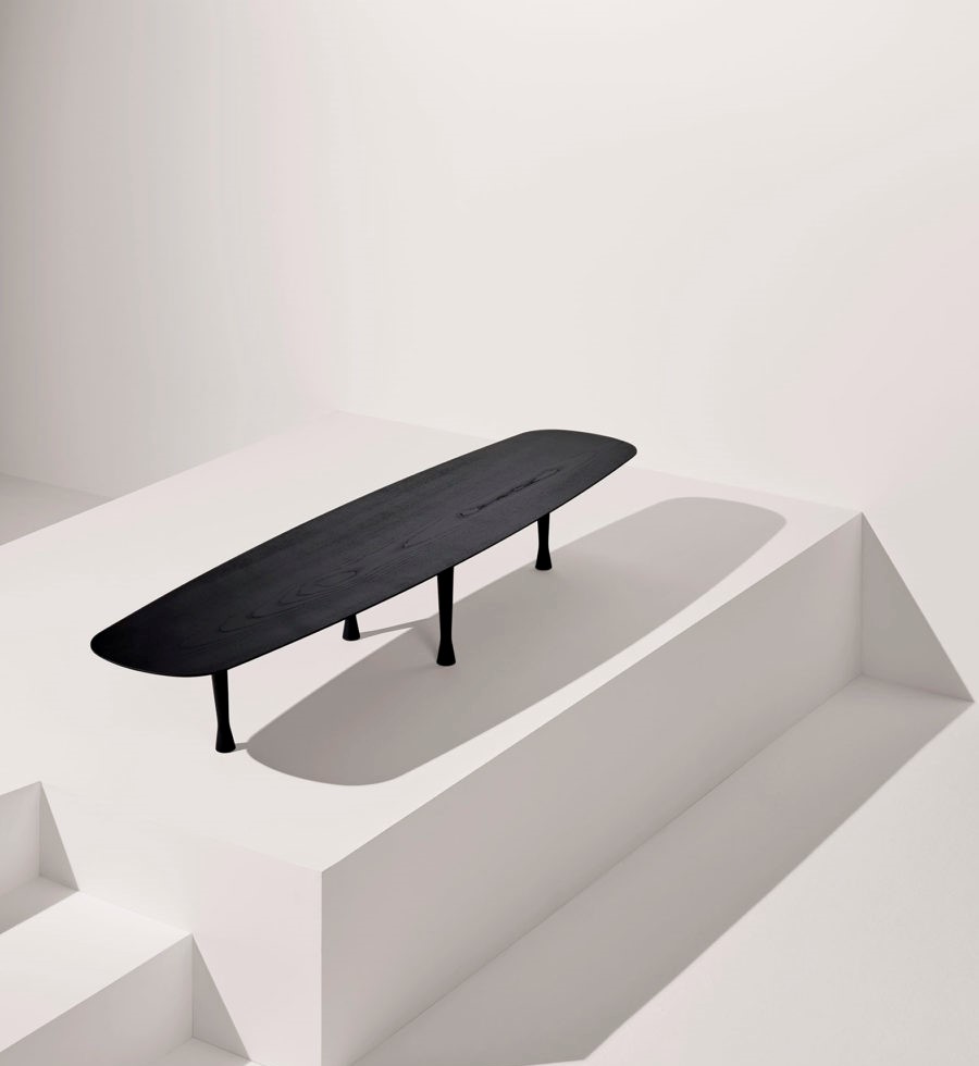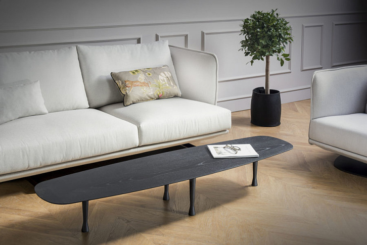 Сдержанный по высоте и монохромной отделке черного или орехового цвета. Выделяется инновационным расположением ножек в форме ромба.