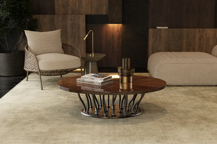 Захватывающее сочетание дизайна, вдохновленного природой, и утонченной элегантности. Этот изысканный стол с овальной столешницей из ореха в форме солнца и переплетенным основанием в виде веток, отделанным роскошным латунным цветом, излучает ощущение вечной красоты. Изготовленный с тщательным вниманием к деталям, он сочетает в себе изысканное мастерство с очарованием натуральных материалов. Независимо от того, улучшаете ли вы декор своего дома или добавляете нотку изысканности отелям и гостиным, журнальный столик Allana приглашает вас ощутить идеальное сочетание природы и элегантности.