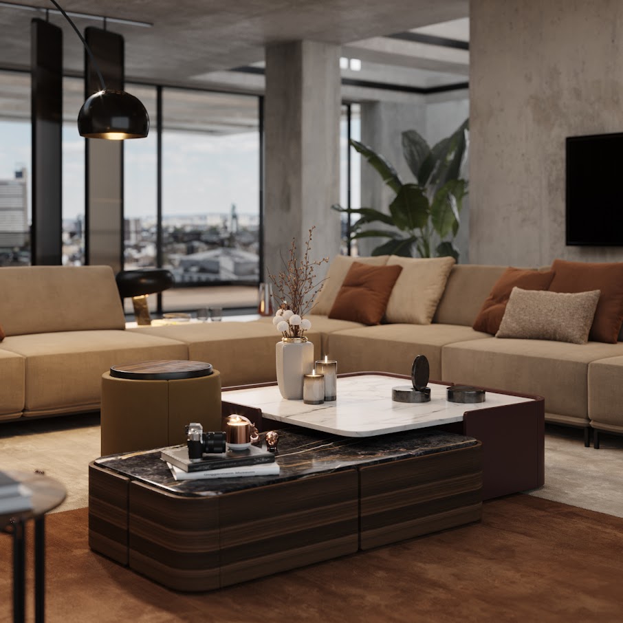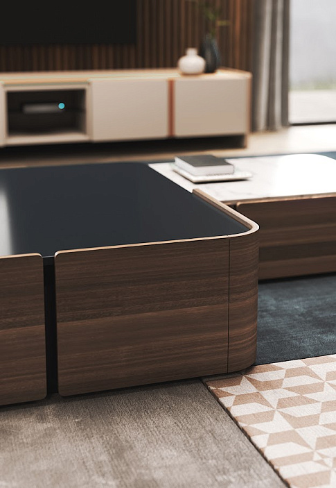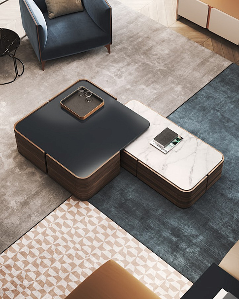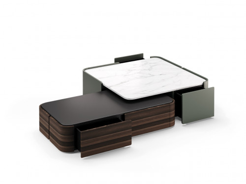 Демонстрируя стильный современный дизайн, центральные столы Arizona были вдохновлены ритмичной и цикличной формой «Волны», скального образования, расположенного в Аризоне. Сочетание деревянного изогнутого корпуса, состоящего из 2 ящиков каждый, с различной высотой столешницы и материалами, это стильный элемент дизайна, который добавит ценности центру любого современного декора гостиной.