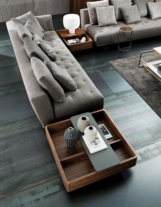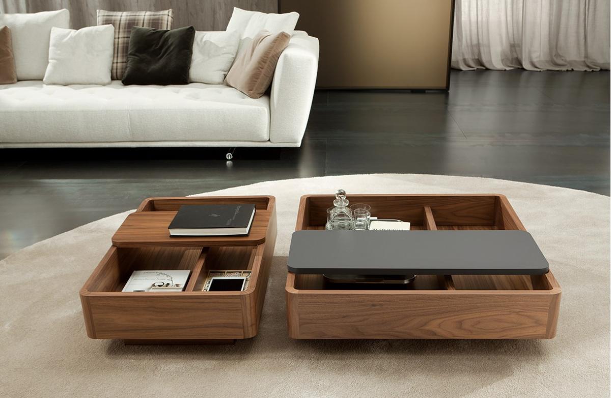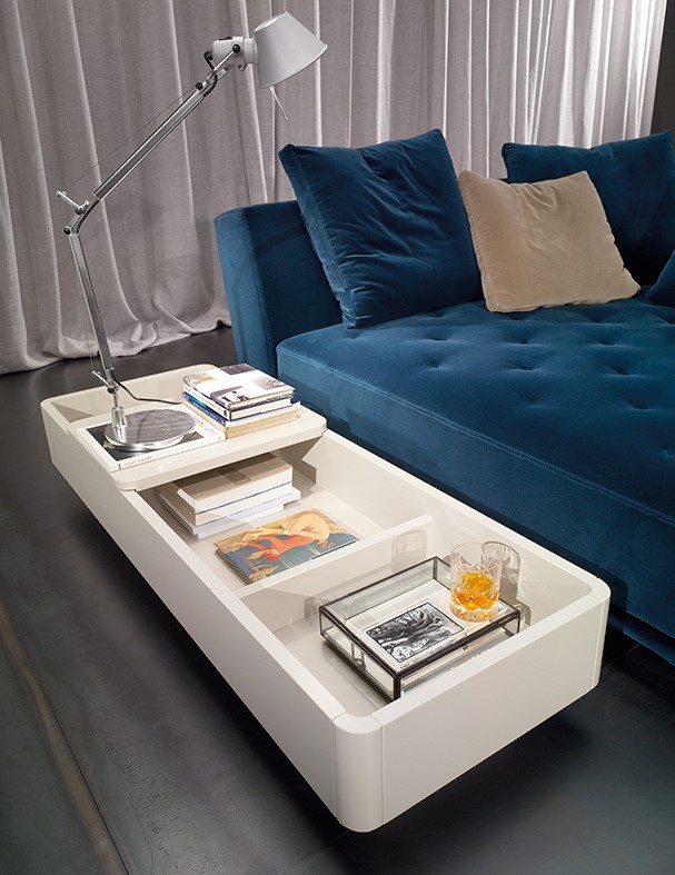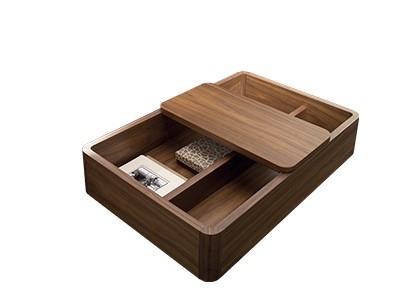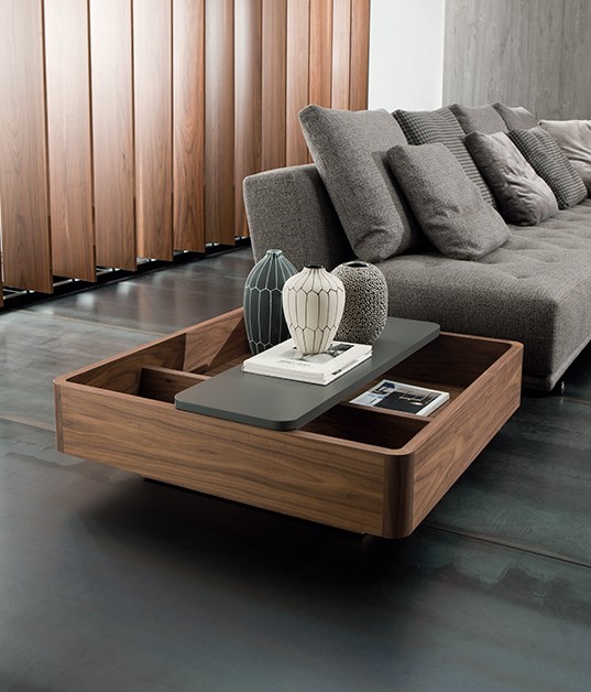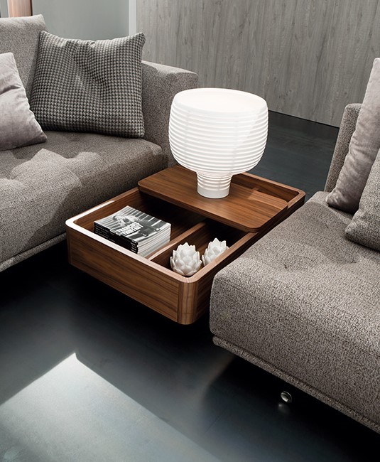 Идея столиков-контейнеров Baku основана на возможности иметь предмет интерьера, который выполняет функции традиционного приставного стола, но также является емкостью для хранения. Эти столики могут быть размещены не только в традиционных зонах возле диванов, но также между двумя модулями диванов, создавая, таким образом, новое расположение и настроение в соответствии с потребностями момента. Изготовленные из дерева, они позволяют смешивать отделки контейнеров и скользящей крышки. Структура из шпона дерева в натуральной отделке или окрашенной. Скользящие крышки могут быть покрыты лаком или облицованы другим цветом, который контрастирует с базовым контейнером.
