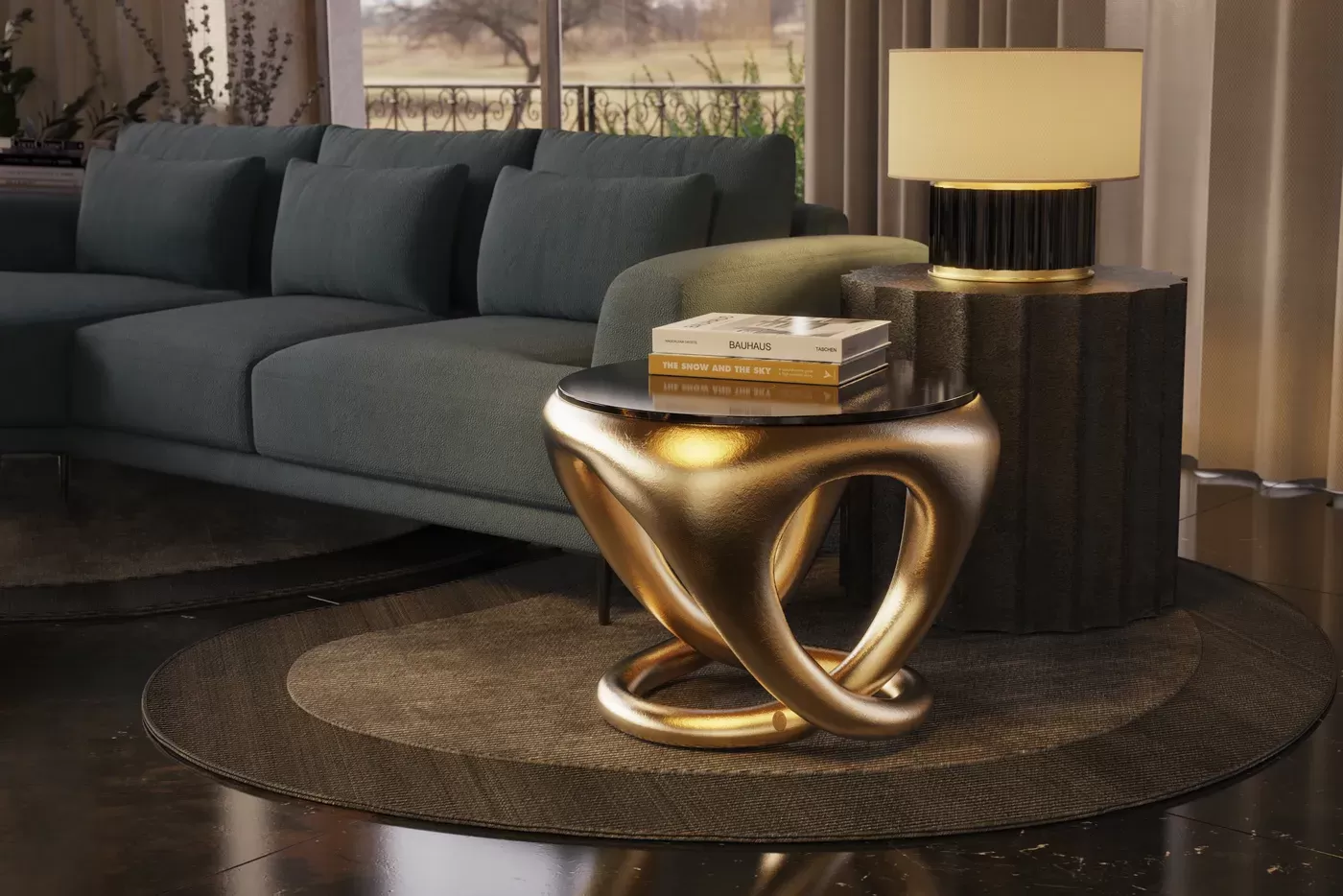 Наслаждайтесь поэтической красотой BALLAD, приставного столика с плавными линиями, отделанного сияющим золотым листом с отделкой под черный + золотой мрамор. Этот отличительный дизайн вызывает ощущение движения и элегантности, создавая визуальную симфонию в вашем пространстве. BALLAD — это не просто стол; это заявление о современной грации и роскошном очаровании. Поднимите свое окружение с помощью отличительной элегантности приставного столика BALLAD, где каждая линия — это штрих художественного изящества. Погрузитесь в плавную красоту BALLAD, свидетельство безупречного сочетания дизайна и роскоши.