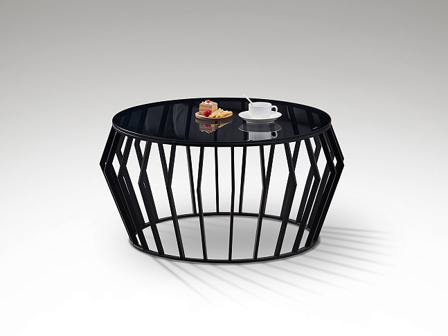 Журнальный столик из металла с матовой черной отделкой. Верхняя часть из дымчатого стекла толщиной 8 мм.