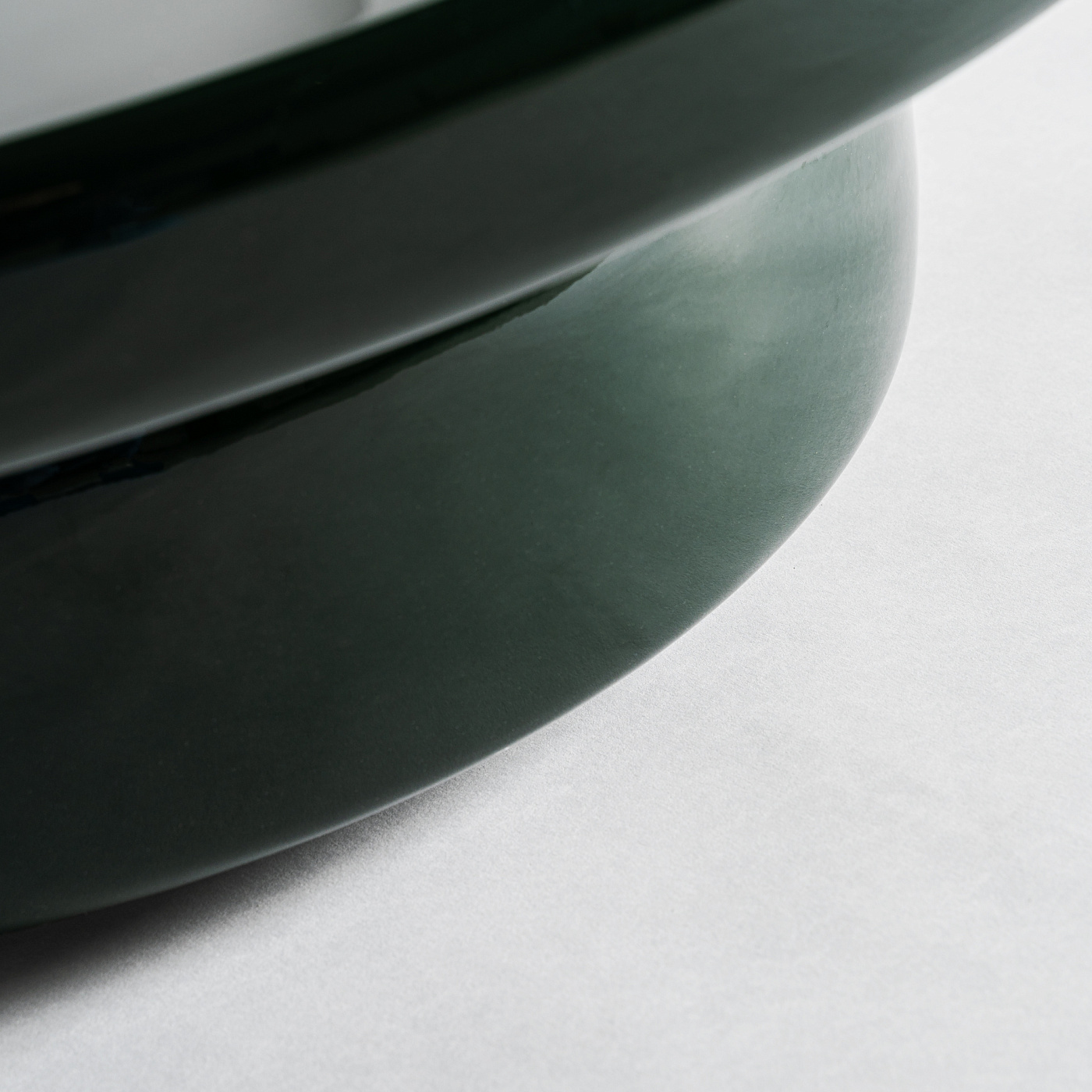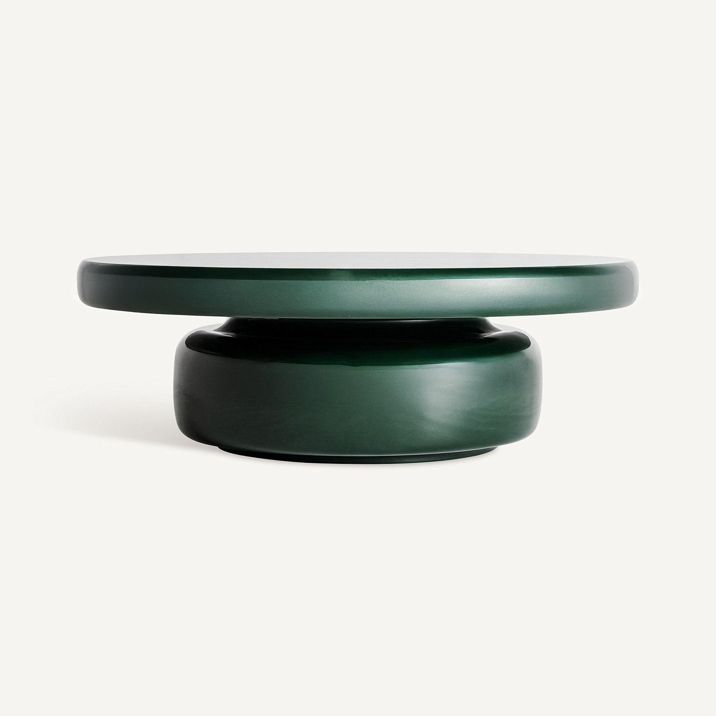 Журнальный столик Gory в современном стиле, изготовлен из зеленого дерева DM с глянцевой отделкой в сочетании с зеленым стекловолокном. Изделие разборное.