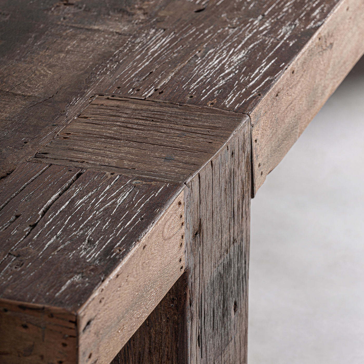 Журнальный столик Losse в классическом стиле, изготовлен из переработанной древесины коричневого цвета. Ширина: 160 см, Глубина: 80 см, Высота: 35 см