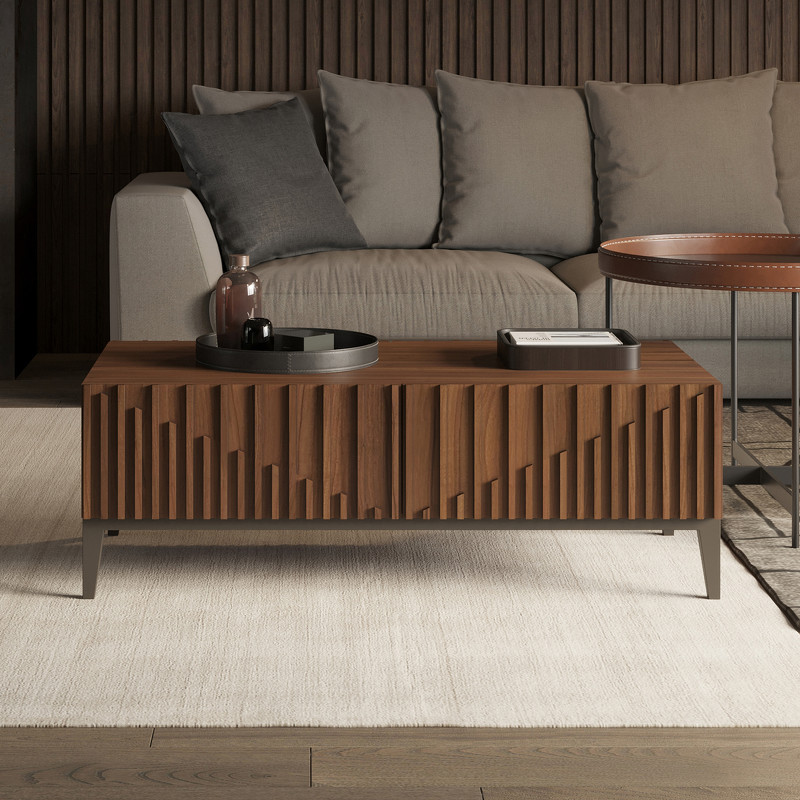 Журнальный столик MENORCA шпон ореха F, темно-серый матовый лак