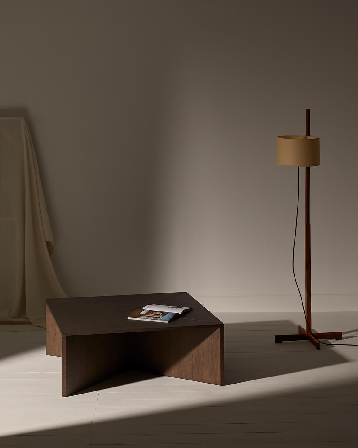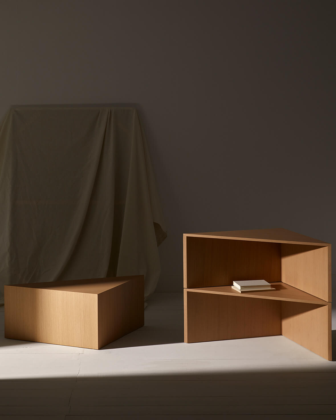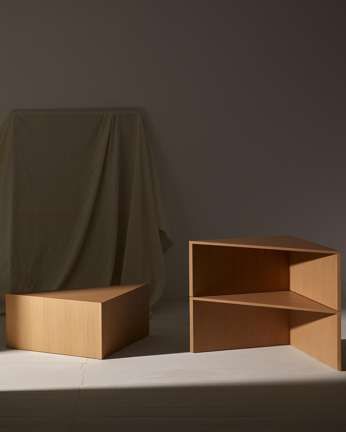 Стол состоит из четырех треугольных модулей, которые работают как вместе, так и по отдельности, выполняя функцию журнального столика, приставных столиков или вспомогательных надстроек для удовлетворения потребностей каждой среды. Это неподвластный времени дизайн с превосходными пропорциями, которые создают уникальное и индивидуальное пространство благодаря множеству комбинаций его деталей и различной отделке из дуба и лака.