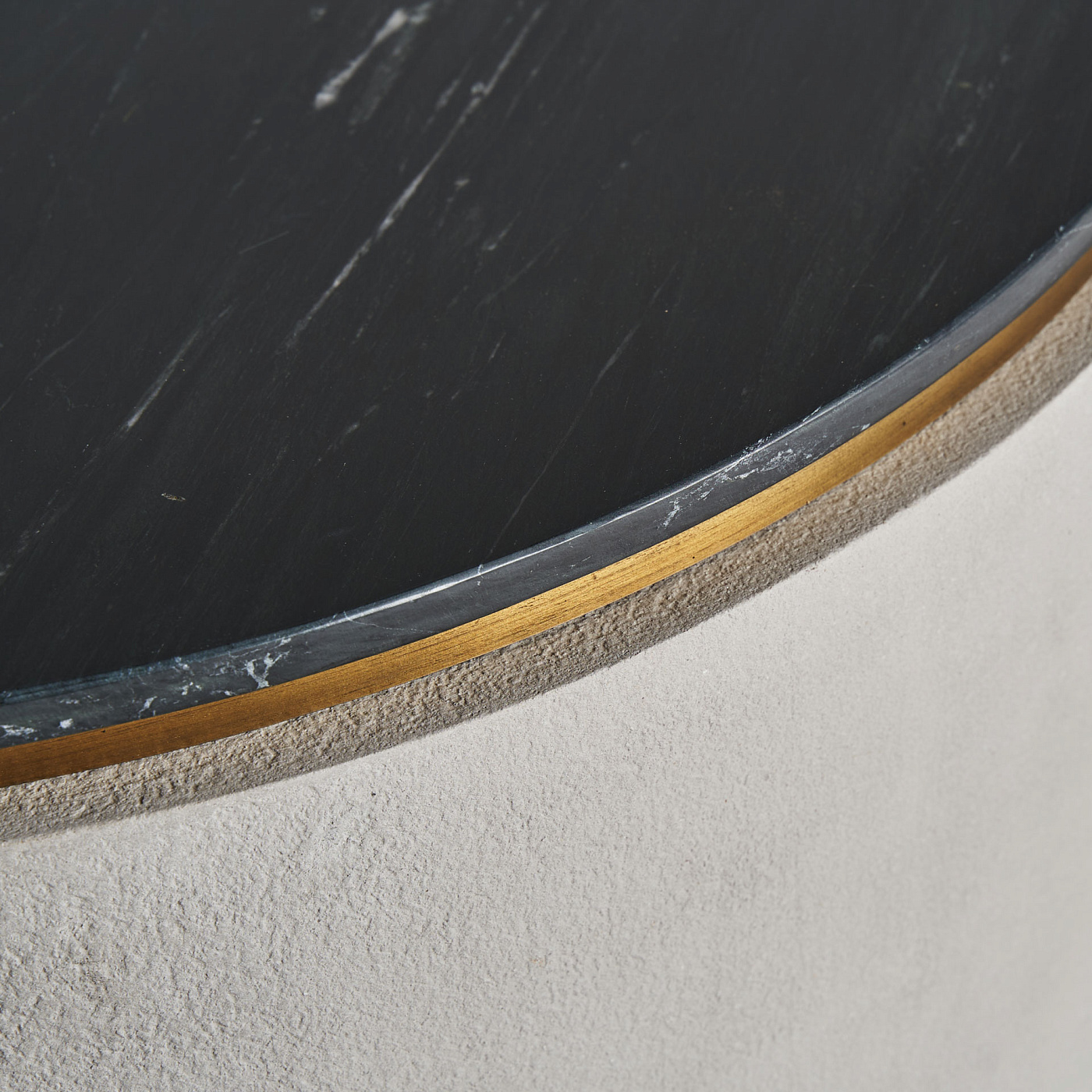 Журнальный столик ZERBST, цвет белый/черный, стиль арт-деко. Изготовлен из железа в сочетании с мрамором и МДФ.