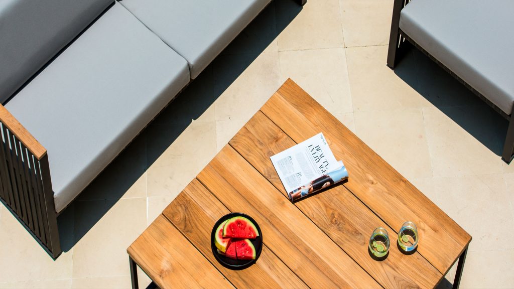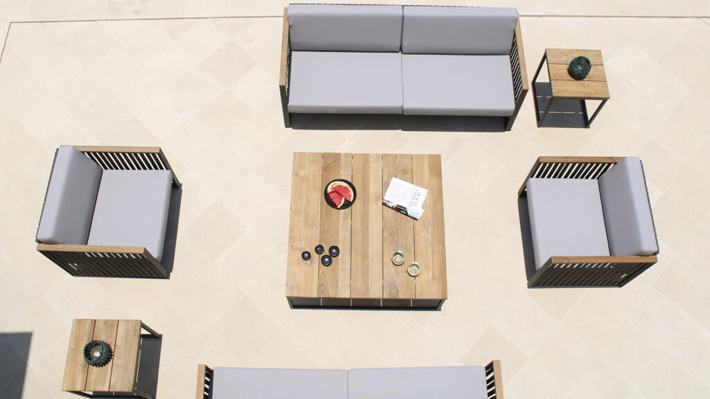 Одна из последних разработок в нашем новом каталоге. Сочетание черного алюминия, темно-серых ремешков и подлокотников из тикового дерева создает универсальную коллекцию, идеально подходящую как городским экстерьерам, так и пространствам для отдыха.