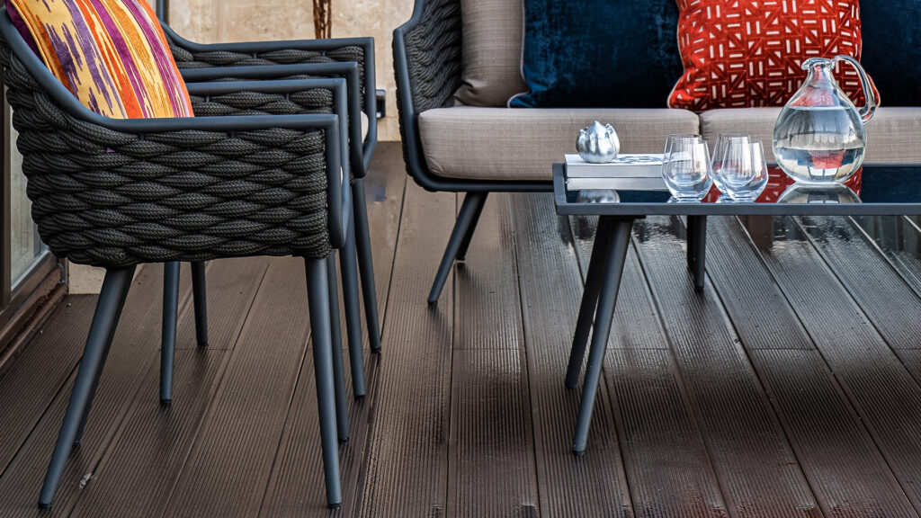Современные органичные формы из алюминиевой рамы в сочетании с ручной оплёткой из синтетического шнура, делают эту коллекцию идеальным выбором для любого пространства.