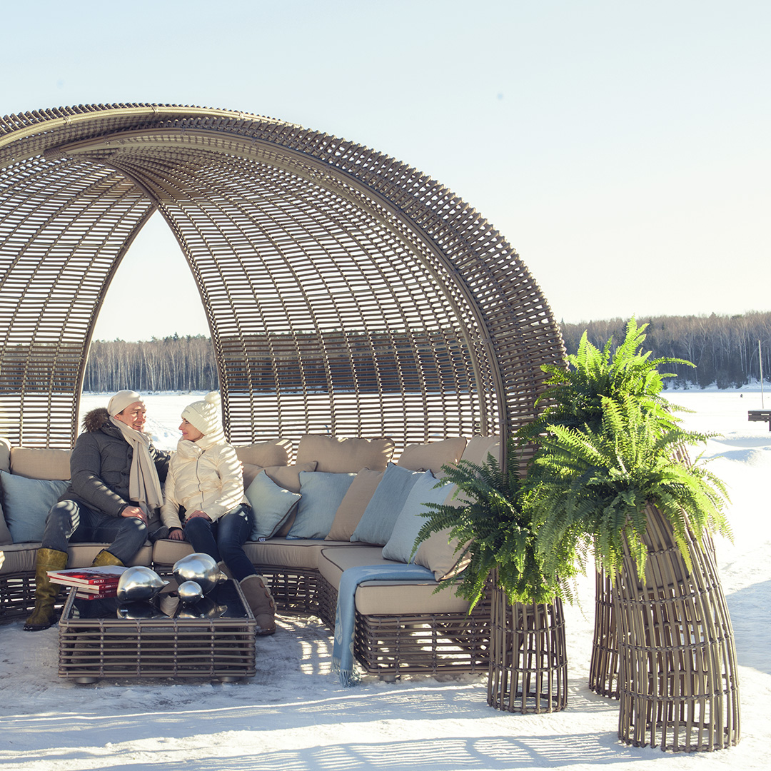 Прекрасным дополнением к зоне отдыха станет журнальный столик SPARTAN от Skyline Design. Он подойдёт как для беседки SPARTAN, так так и для любого другого варианта, являясь прекрасным примером сочетания удобства и лаконичного дизайна. Выполнен из плетения MUSHROOM 15 мм на основе из алюминия. Вместительный и функциональный, создан для того, чтобы всё необходимое было всегда под рукой. Для придания изысканности можно выбрать столешницу из фарфора или гладкого закаленного стекла. Идеально сочетаясь с кушеткой SPARTAN, этот столик станет прекрасным аксессуаром для завершения всей композиции.