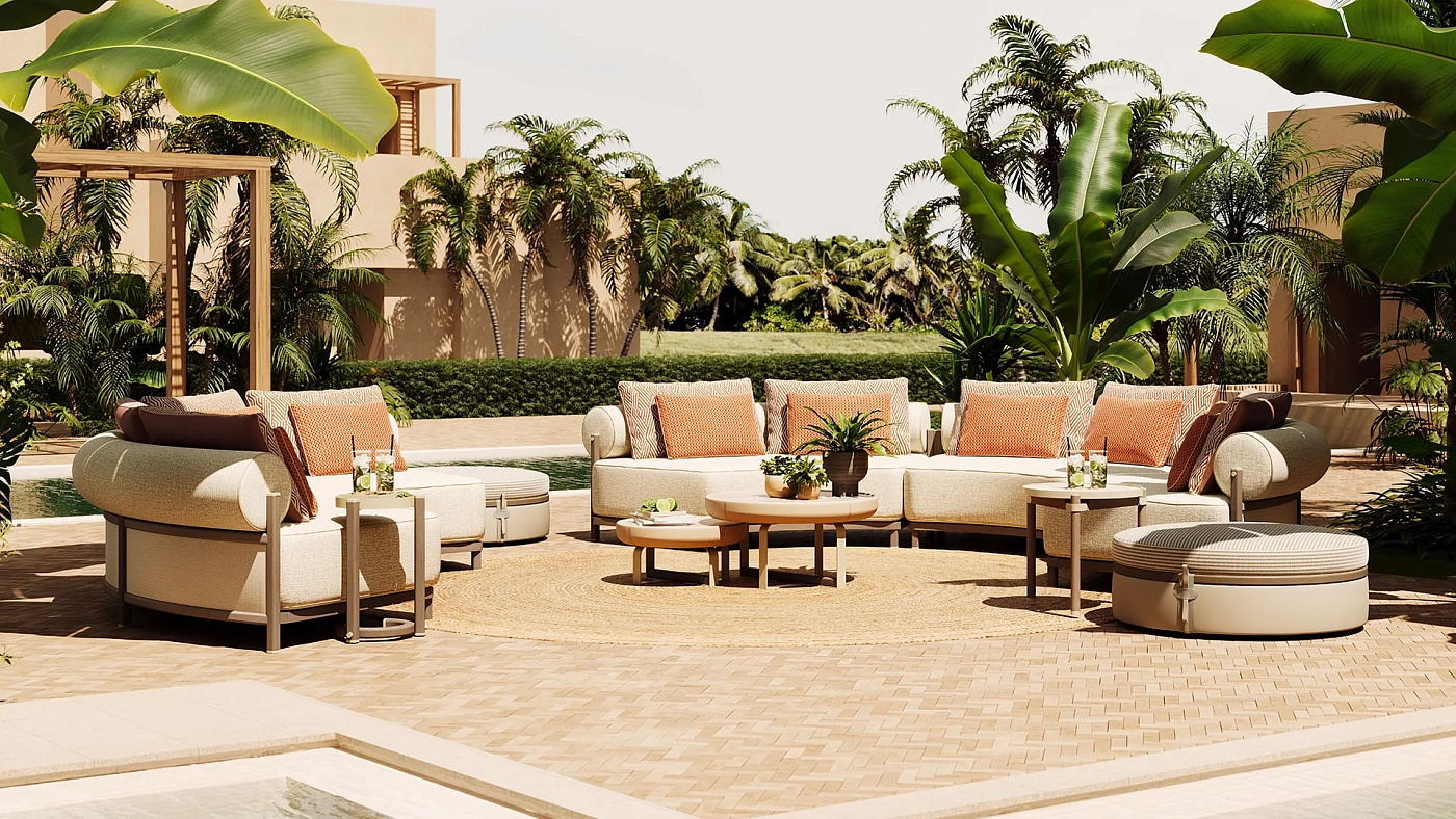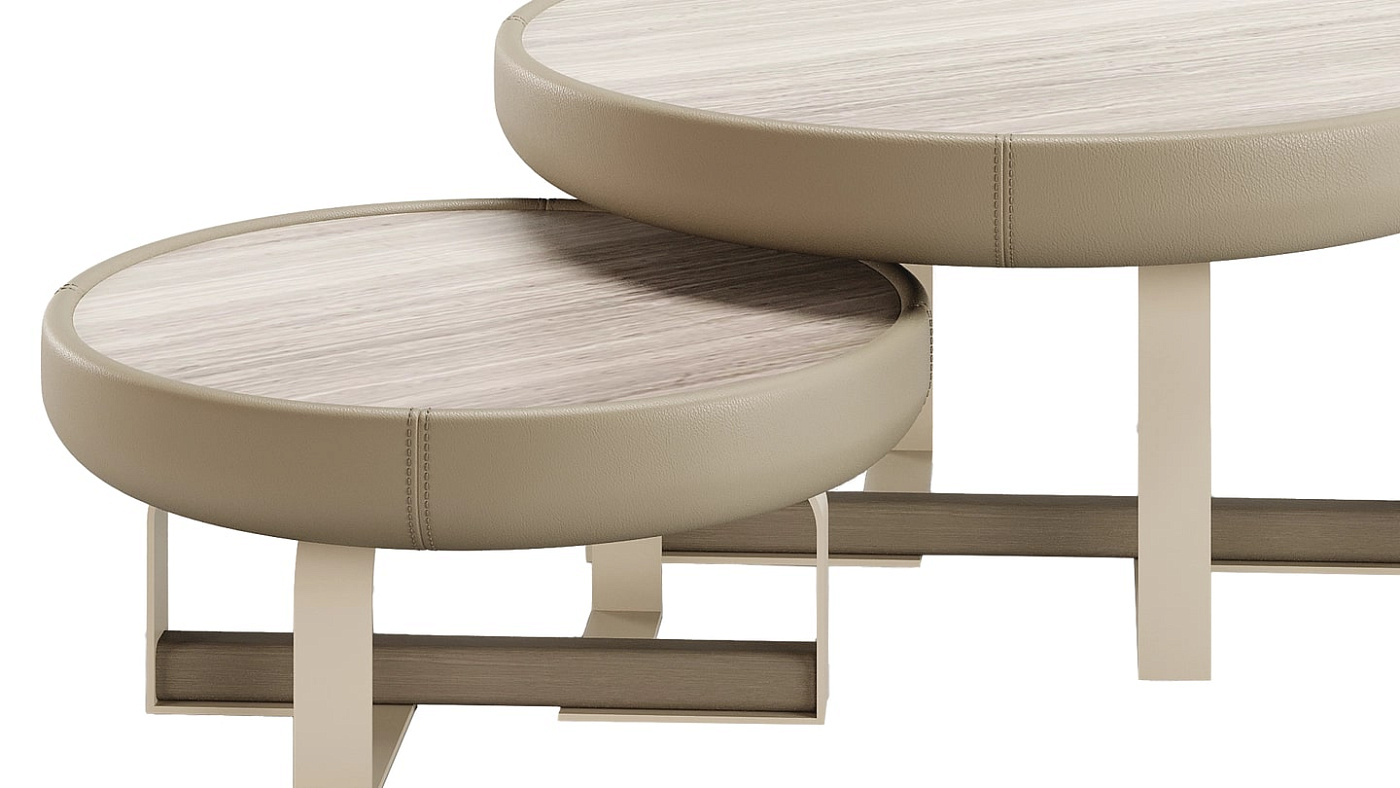 "Двухуровневый дизайн нашего журнального столика BOGOTA привлекает внимание. В нем сочетаются сталь, камень и дерево, создавая деревенскую атмосферу, в то время как гладкая кожа придает изделию утонченную нотку. Натуральные текстуры и нейтральные цвета были выбраны в дополнение ко всей нашей коллекции SAINT-TROPEZ, предназначенной для использования на открытом воздухе. "