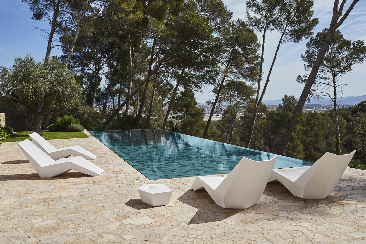 Коллекция FAZ, созданная для компании Vondom всемирно известным испанским дизайнером Рамоном Эстеве (Ramon Esteve), включает в себя модульный диван, два кресла, пару небольших столиков, модульную скамейку, кровать lounge, шезлонг и комплект из трех кашпо. Основным мотивом дизайна коллекции стала кристаллическая структура натуральных минералов, которая создает удивительную атмосферу из бликов и отражений. Причудливая игра света и теней порождает ощущение некоего органического порядка, странную иллюзию существования волшебного мира и иной реальности.