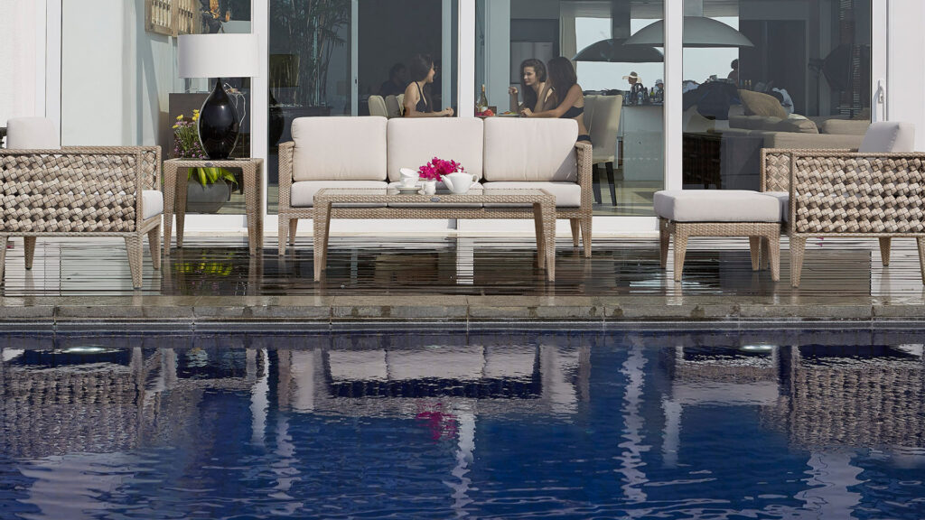 Современные линии и чёткие формы — вот основные свойства этой коллекции. Характерная объёмная оплётка и грациозные ножки создают визуальный контраст, который с безупречностью вписывается в любое место дома или сада.