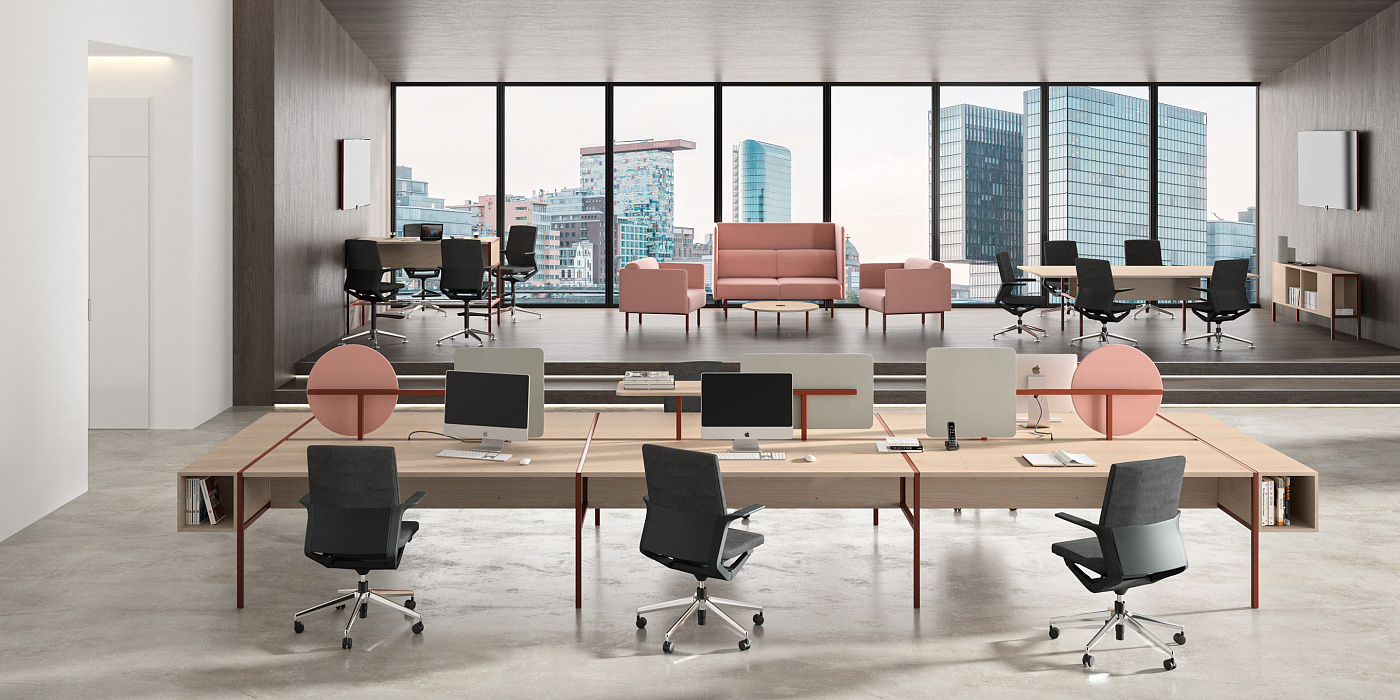 Piem — это коллекция, разработанная с учетом простой модульности и в то же время современного стиля; предоставление решений для совместной работы в рабочих пространствах с творческими и оригинальными комбинациями. Конкретные решения могут быть созданы с учетом различных потребностей клиента.