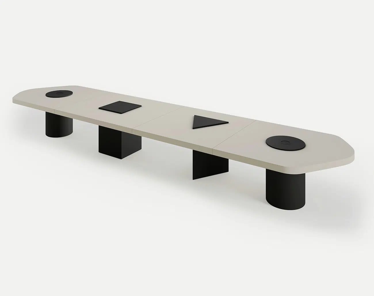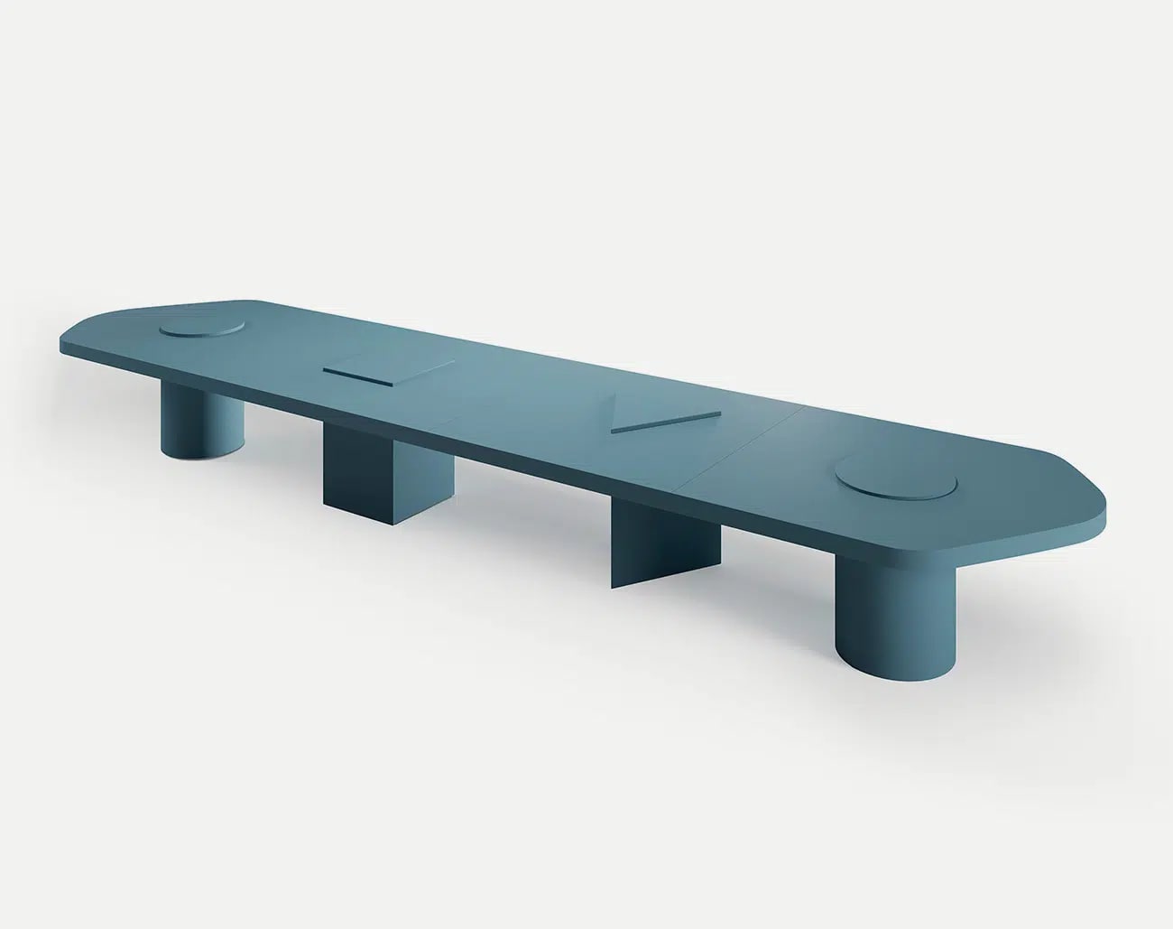 Конференц-стол, спроектированный как модульная система, позволяет динамично и гибко конфигурировать рабочие места или помещения для совещаний. Всего из четырех модулей можно создавать различные конфигурации, начиная от начальной длины в 3,2 м и заканчивая конфигурациями большего размера, используя модули с различными геометрическими формами в качестве основы. Начальный и конечный модули размером 160 см с кругом в качестве основания сохраняют скульптурную составляющую, контрастирующую с асимметричной столешницей. В модуле длиной 140 см в качестве основания используется треугольник, а в модуле длиной 180 см - квадрат. Каждый модуль стола Bold может быть покрыт одноцветным матовым или глянцевым лаком, а также матовым цветным покрытием. Такая метаморфоза Bold представляет собой техническую задачу для Sancal, где эксперименты и промышленность снова встречаются, чтобы придать форму инновационным и эстетически привлекательным решениям.